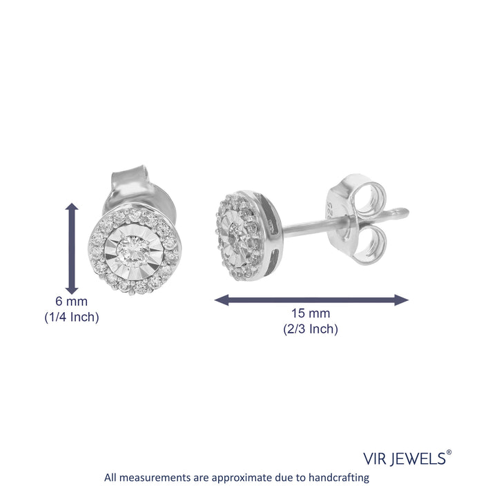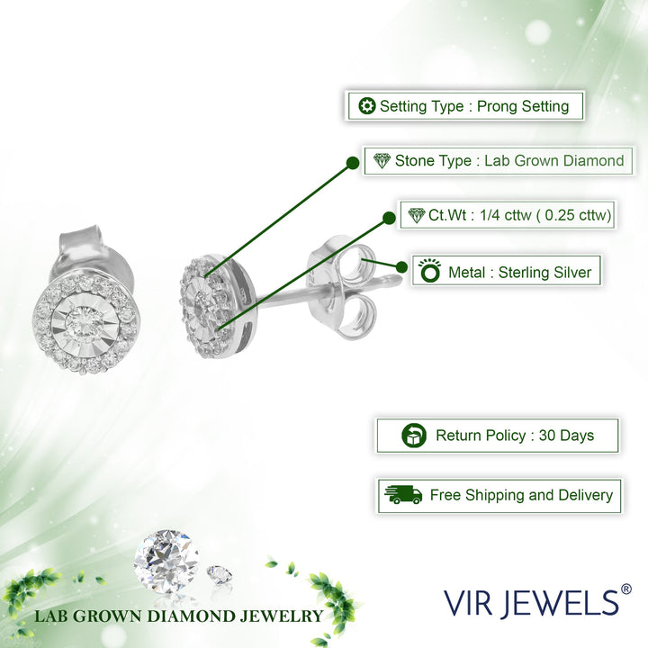 These 1/4 cttw Round Lab Grown Diamond Stud Earrings by Vir Jewels add a touch of sparkle to your everyday style. Featuring 32 round diamonds set in a prong setting, these earrings are crafted in durable .925 sterling silver. Their prong setting ensures maximum diamond visibility and brilliance.