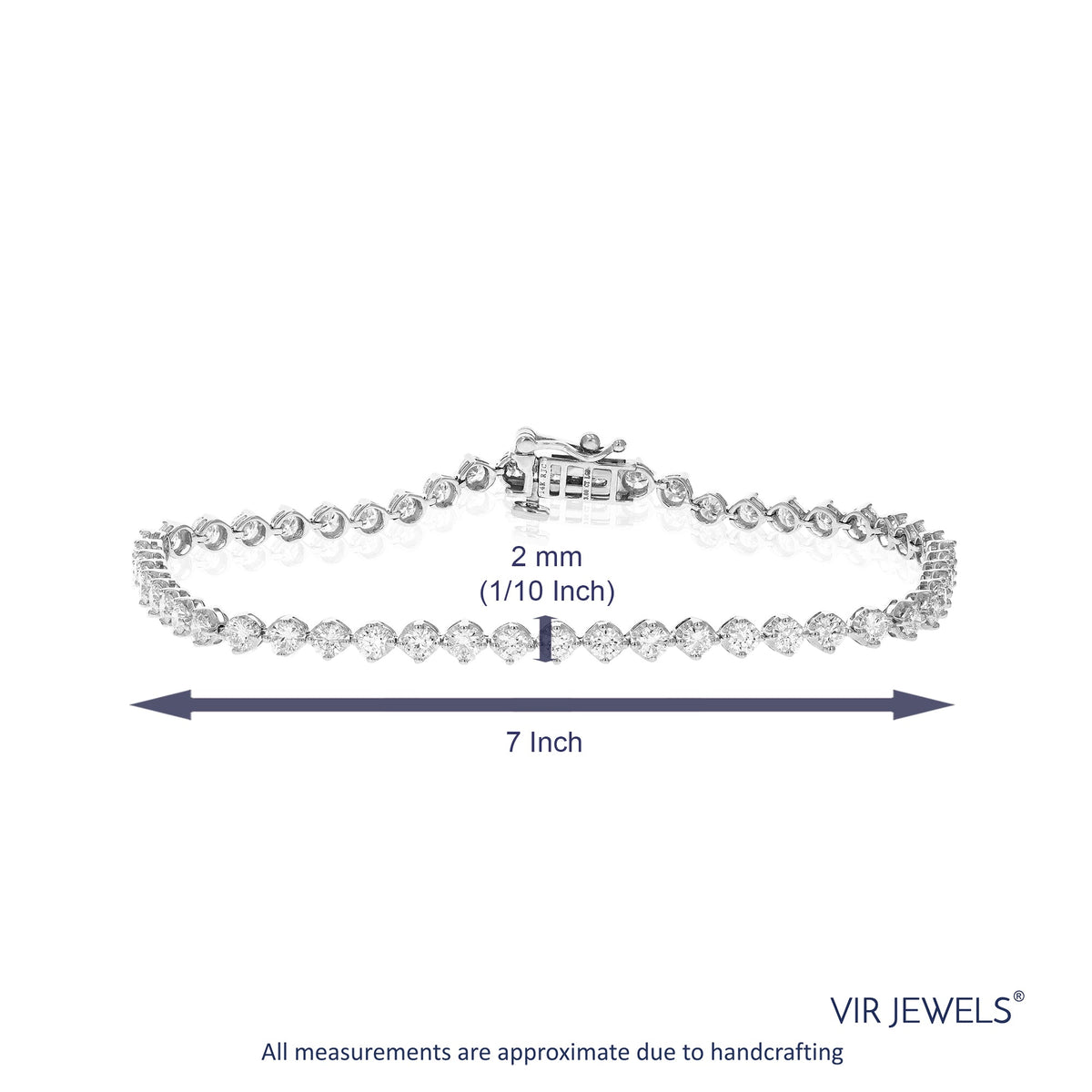 This 2 cttw 57 Stones Round Diamond Bracelet in 14K White Gold by Vir Jewels is a classic and sophisticated accessory. The 57 round diamonds, set in a prong setting, create a stunning display of sparkle across the bracelet. Crafted in high-quality 14K white gold, this bracelet features a 7-inch length and a width of 3 mm, making it the perfect piece for both casual and formal occasions. Securely fastened with a box and tongue safety clasp, this bracelet combines beauty and functionality.
