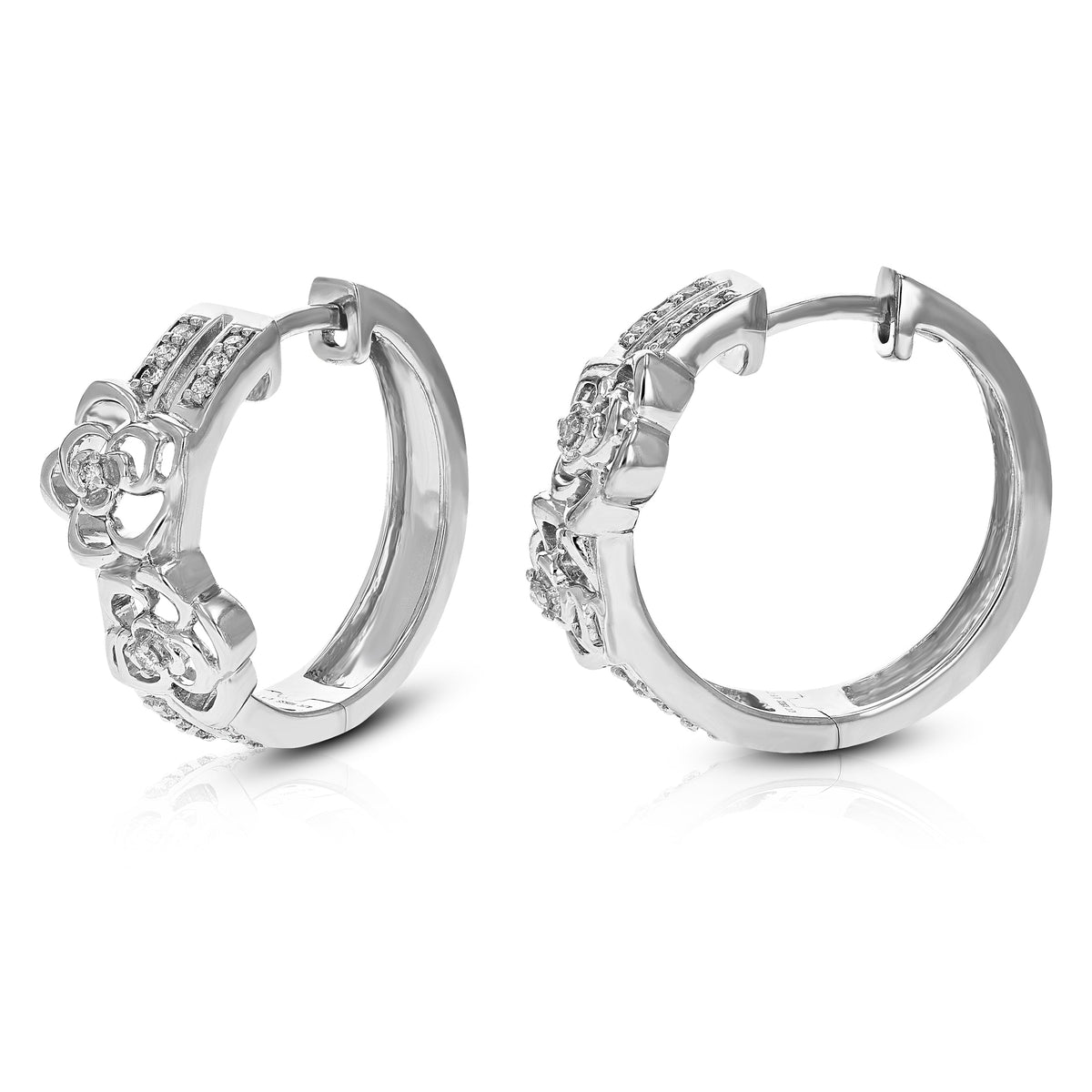 1/6 cttw Round Lab Grown Diamond Hoops .925 Sterling Silver Earrings Prong Set