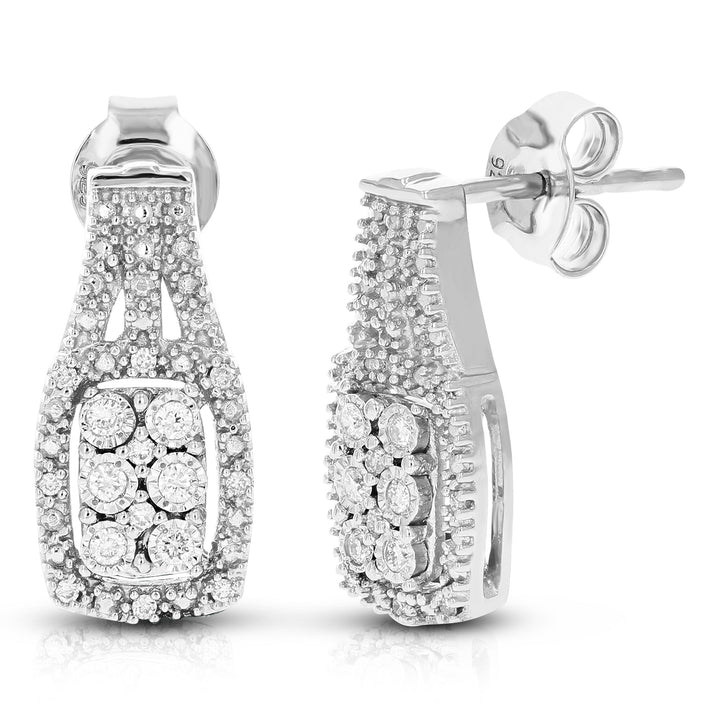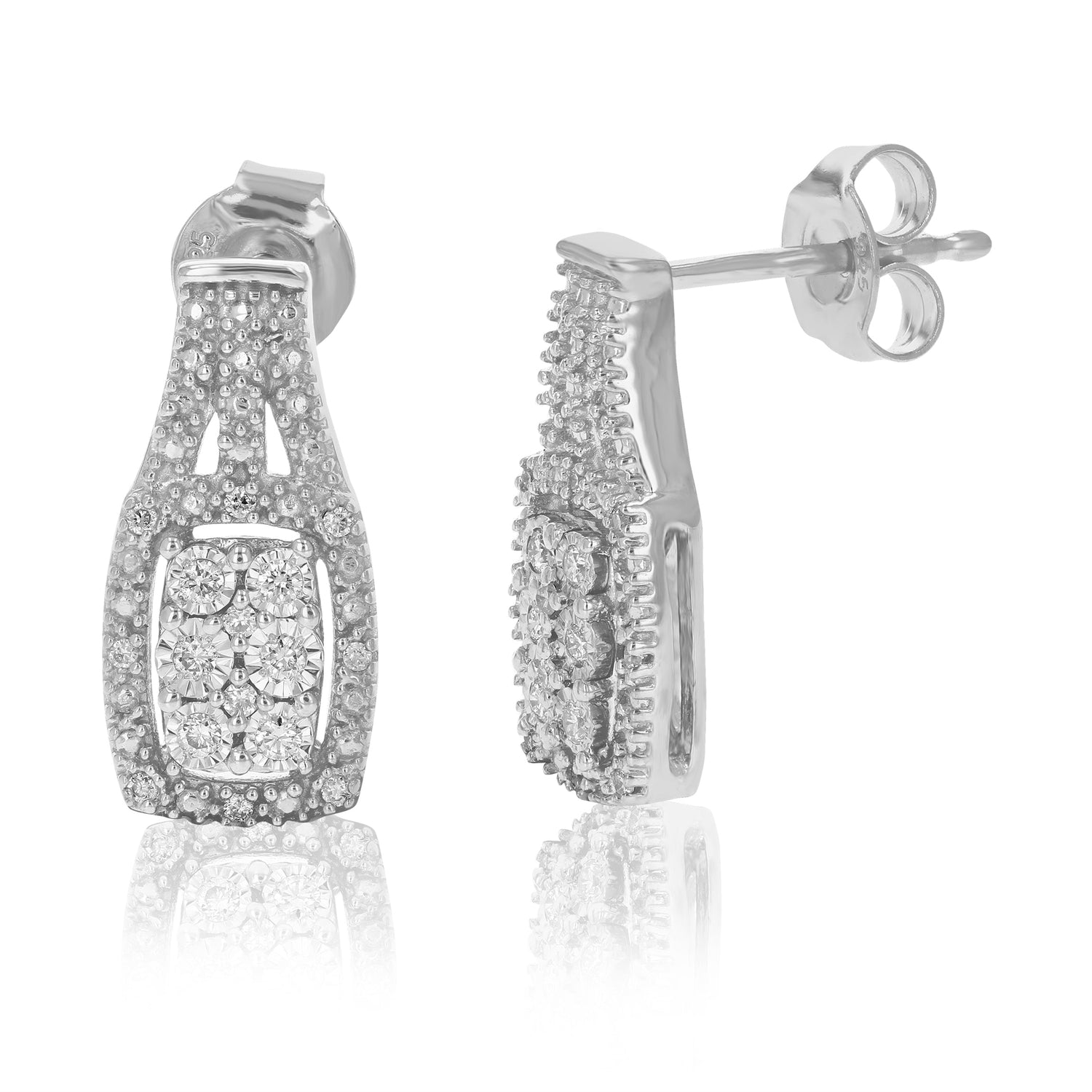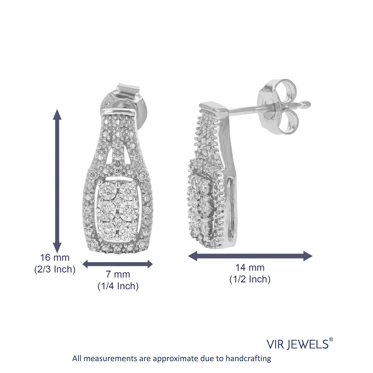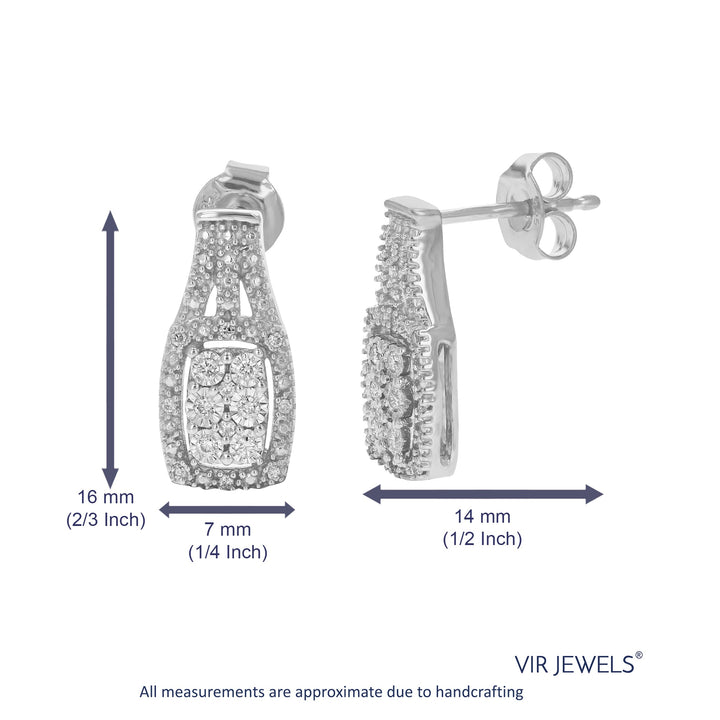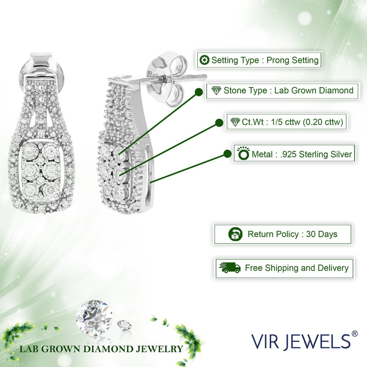 Crafted in .925 sterling silver with 1/5 cttw round-cut lab-grown diamonds. Diamonds are H-I color, SI1-SI2 clarity. Features a prong setting with 32 diamonds. Earring dimensions: Width: 7mm (1/4 inch), Height: 16mm (2/3 inch).