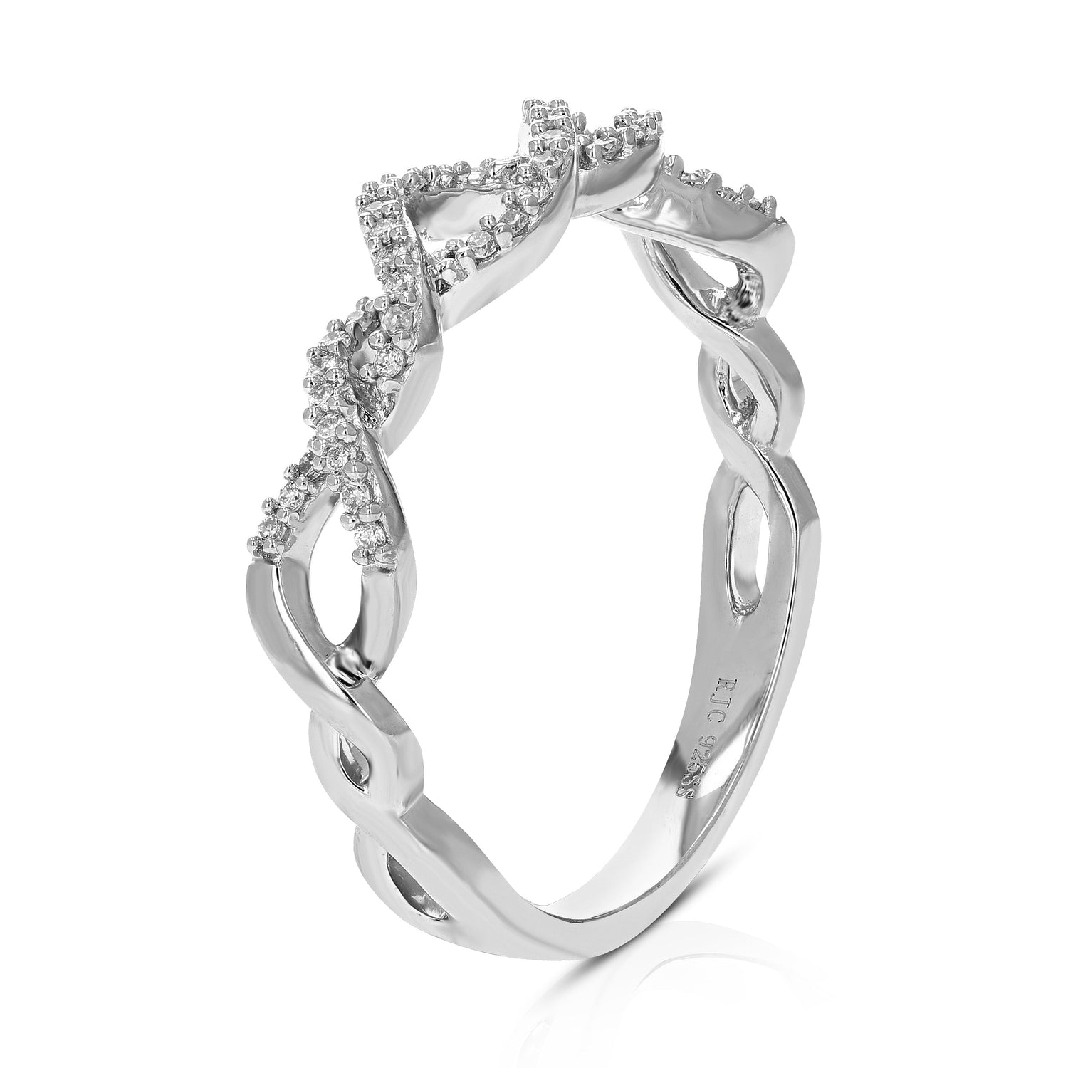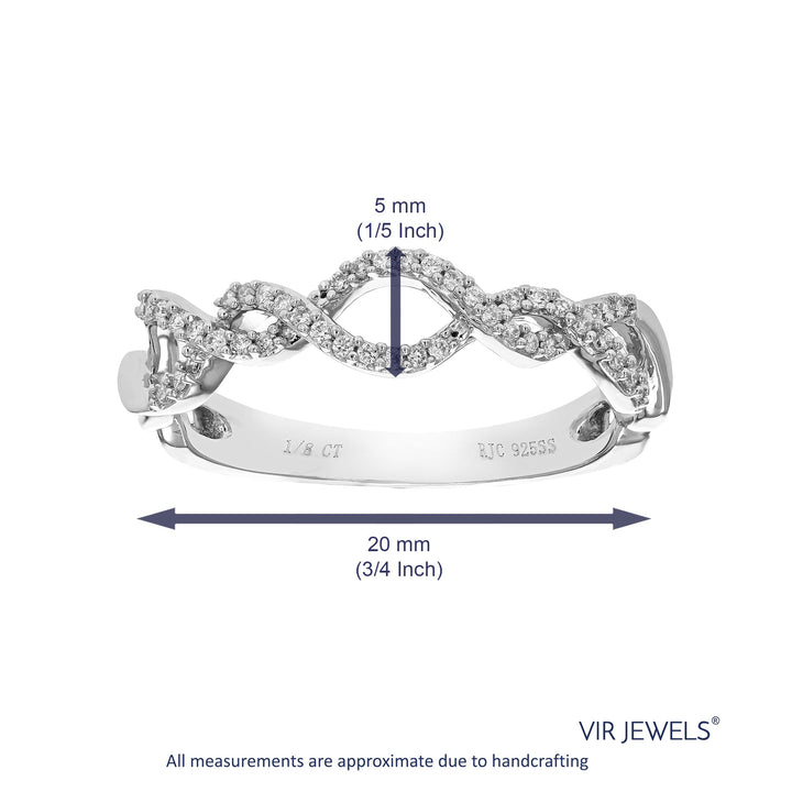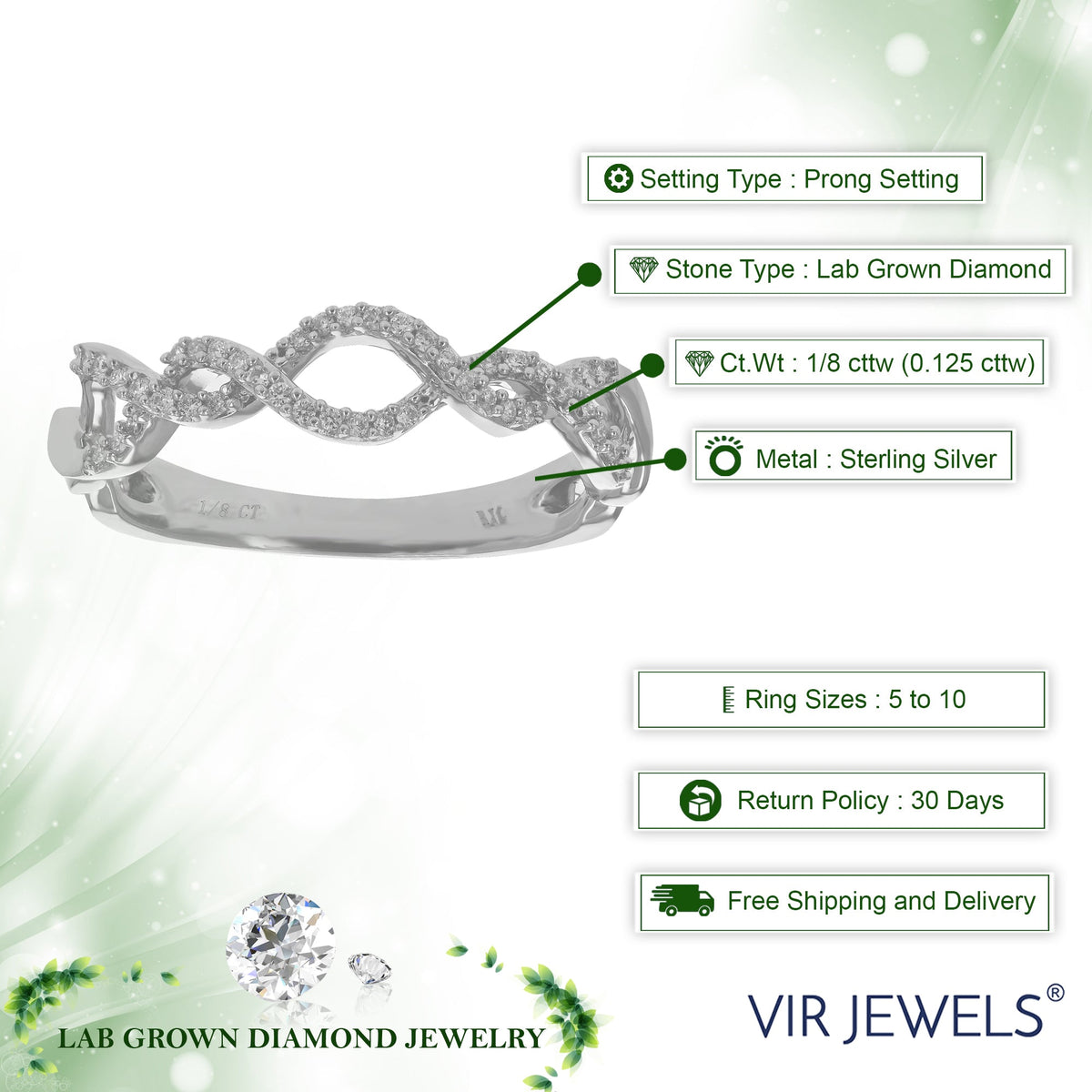 .925 sterling silver, 1/8 cttw lab-grown diamonds (45 stones), round-cut diamonds, H-I color, SI1-SI2 clarity, prong setting. Ring dimensions: Width - 5mm (1/5 inch), Height - 3mm (1/10 inch).