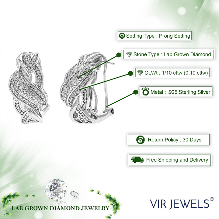1/10 cttw Round Lab Grown Diamond Hoop Earrings .925 Sterling Silver Prong Set 1 Inch