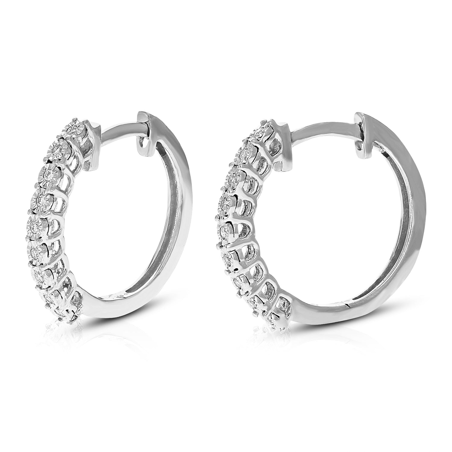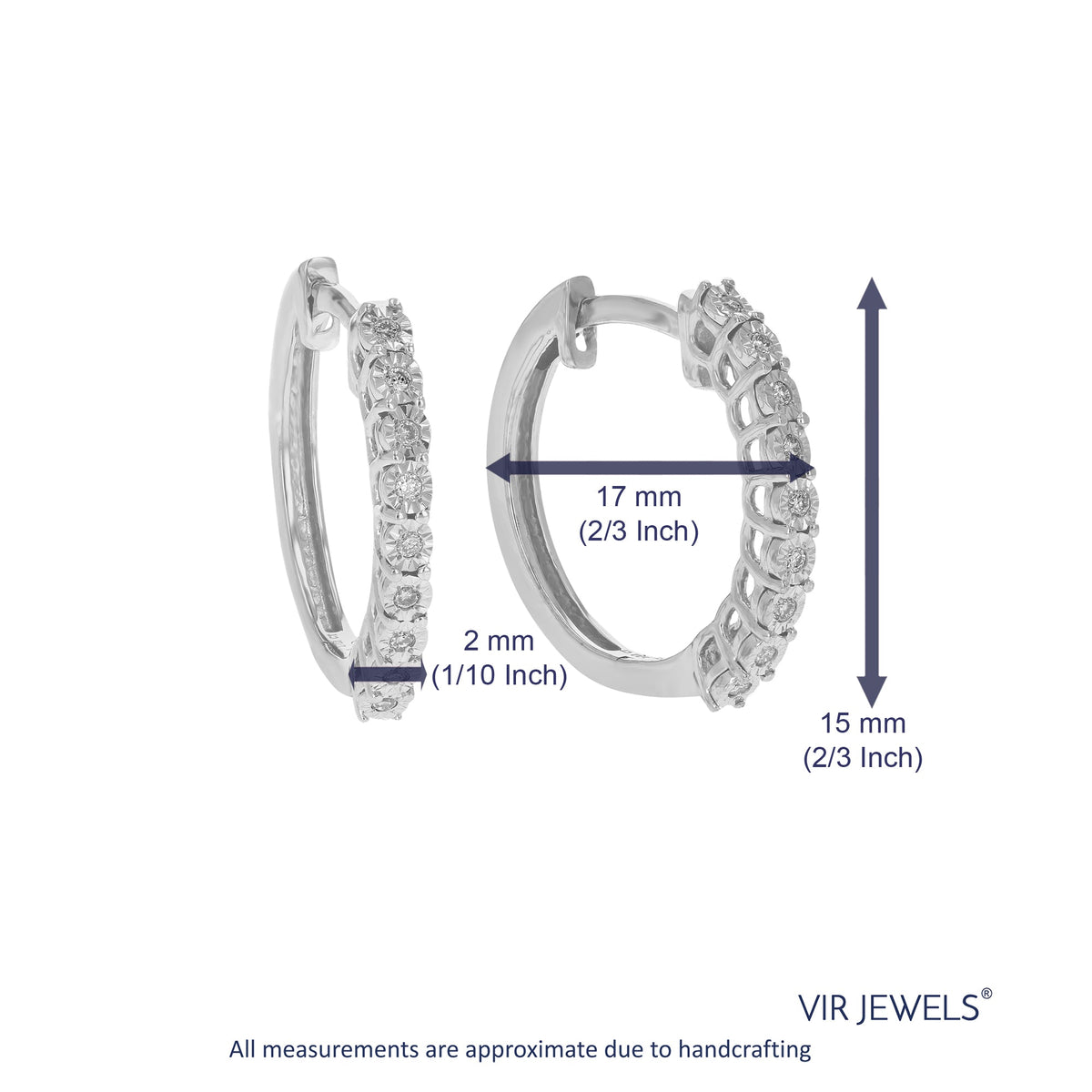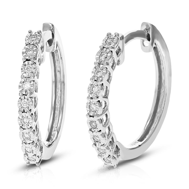 These 1/12 cttw Round Lab Grown Diamond Hoop Earrings by Vir Jewels are the perfect balance of elegance and modern style. The 18 round-cut diamonds are set in a prong setting, ensuring each stone's brilliance is highlighted. Crafted in .925 sterling silver, the hoop earrings are perfect for elevating any look, from casual to formal, adding a touch of sophistication to your jewelry collection.