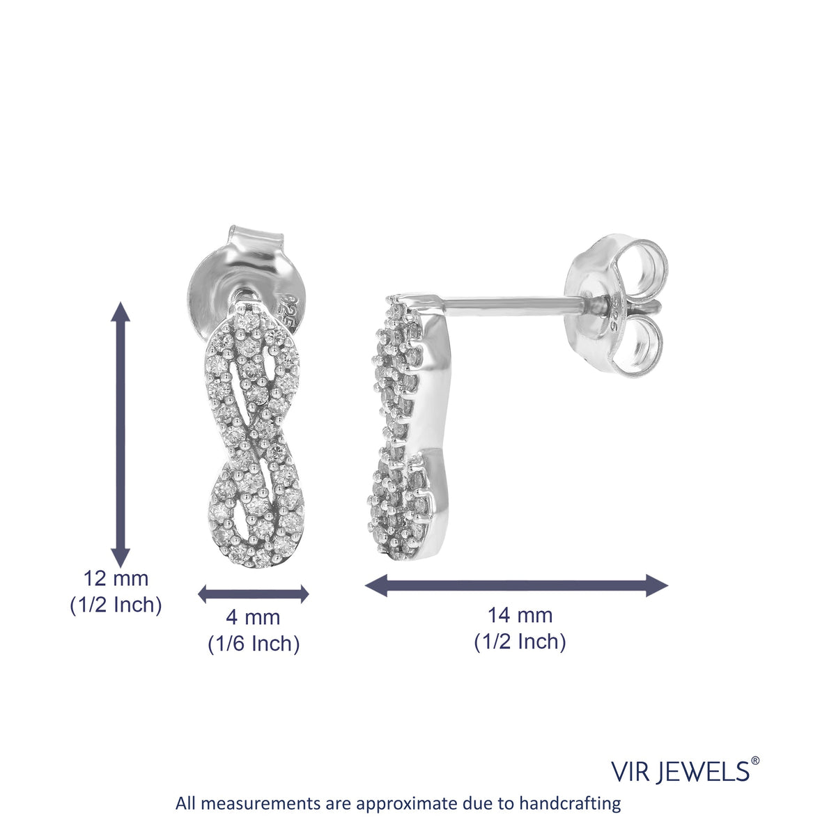 Crafted in .925 sterling silver with 1/5 cttw round-cut lab-grown diamonds. Diamonds are H-I color, SI1-SI2 clarity. Features a prong setting with 56 diamonds. Earring dimensions: Width: 4mm (1/6 inch), Length: 14mm (1/2 inch).