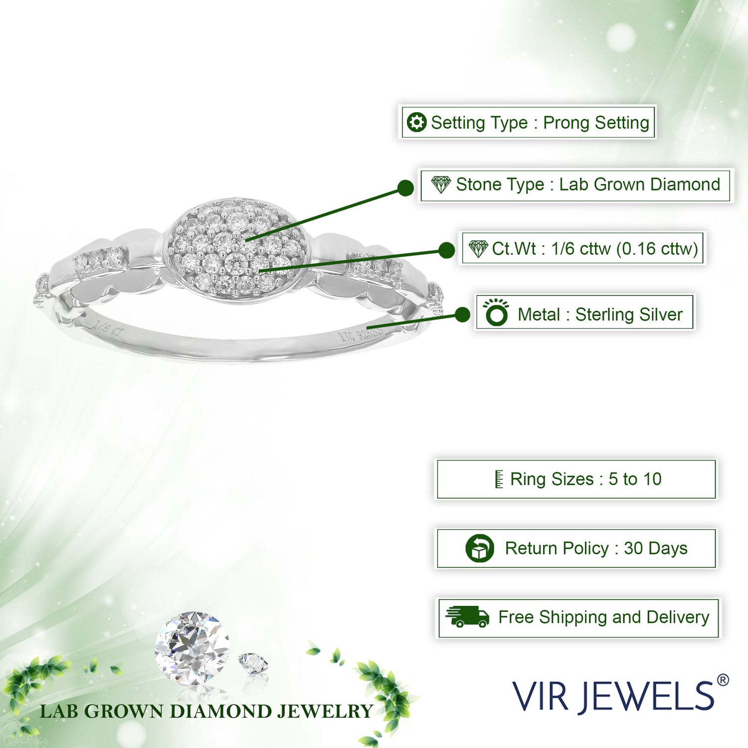 This 1/6 cttw Round Lab Grown Diamond Engagement Ring by Vir Jewels features 36 sparkling diamonds, each set in a prong setting to maximize their brilliance. The classic round-cut diamonds, complemented by the gleaming .925 sterling silver band, exude elegance and sophistication. Perfect for marking an unforgettable moment, this ring effortlessly blends style and durability.