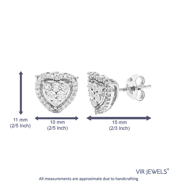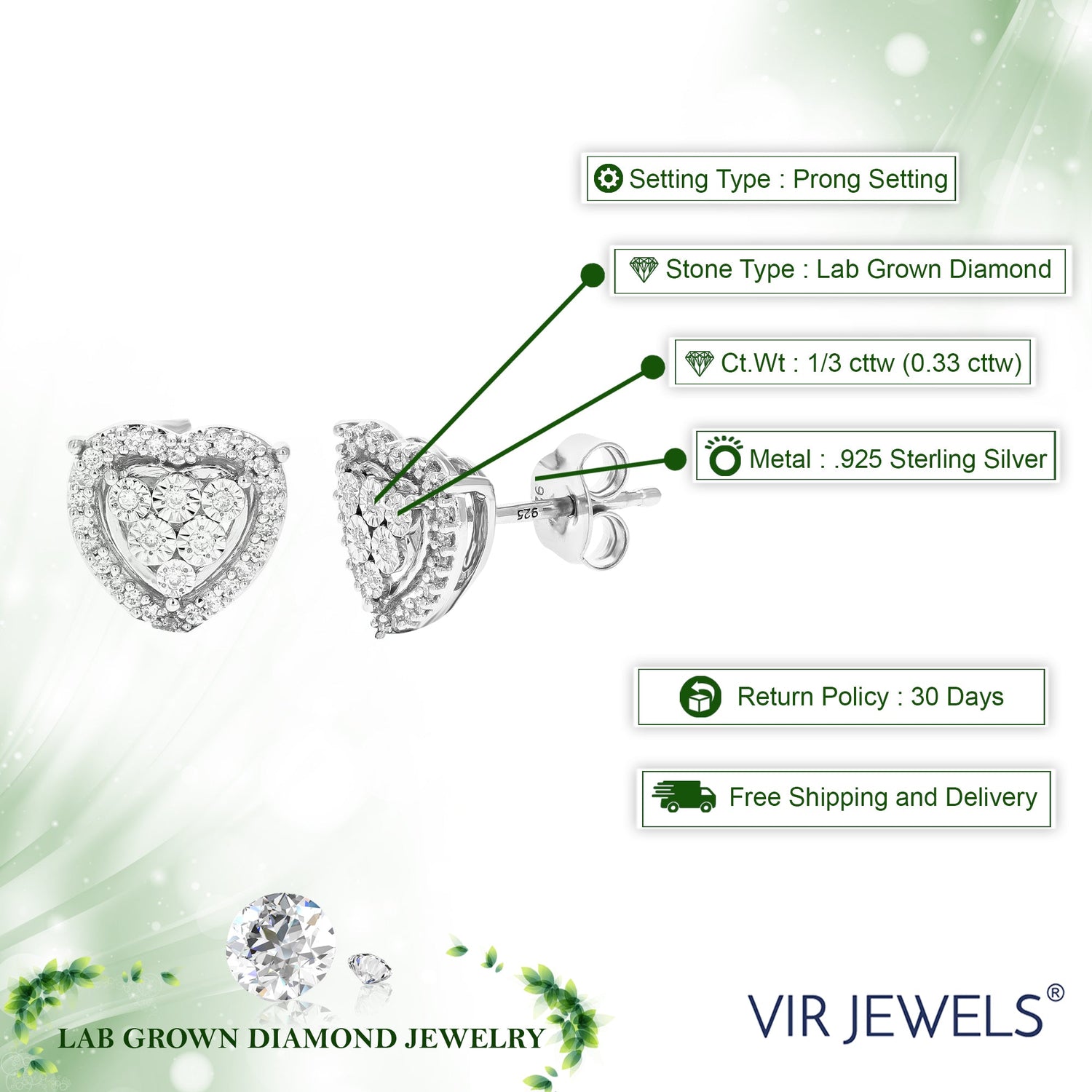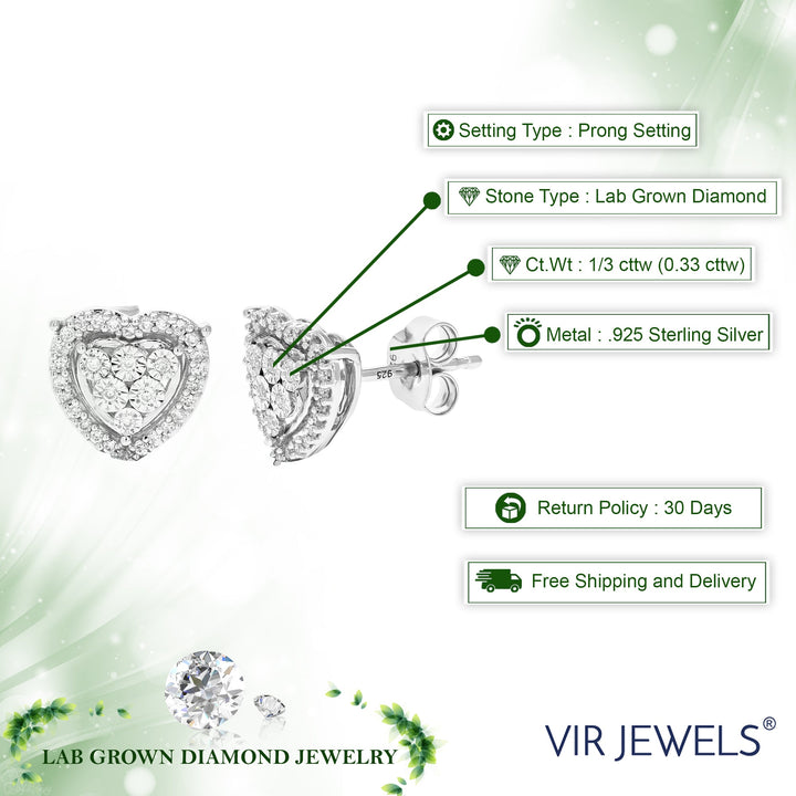 1/5 cttw 64 Stones Round Lab Grown Diamond Studs Earrings .925 Sterling Silver Prong Set Heart Shape