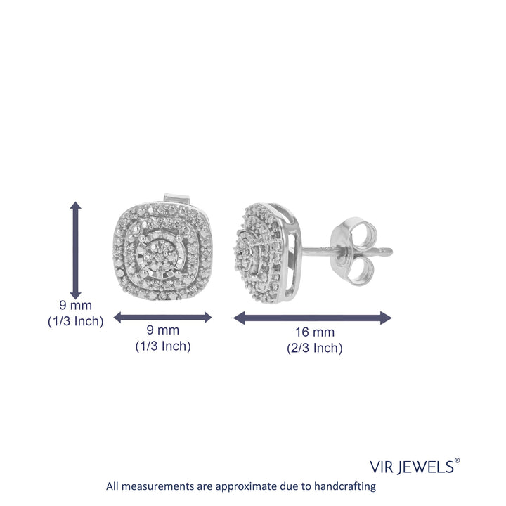 Set in .925 sterling silver with 48 round lab-grown diamonds totaling 1/6 cttw. Diamonds are H-I color, SI1-SI2 clarity. Prong setting for secure placement. Earring dimensions: 9mm (1/3 inch) in width and height.