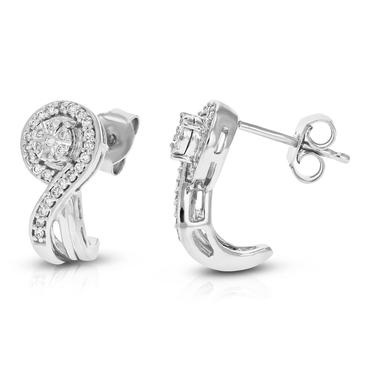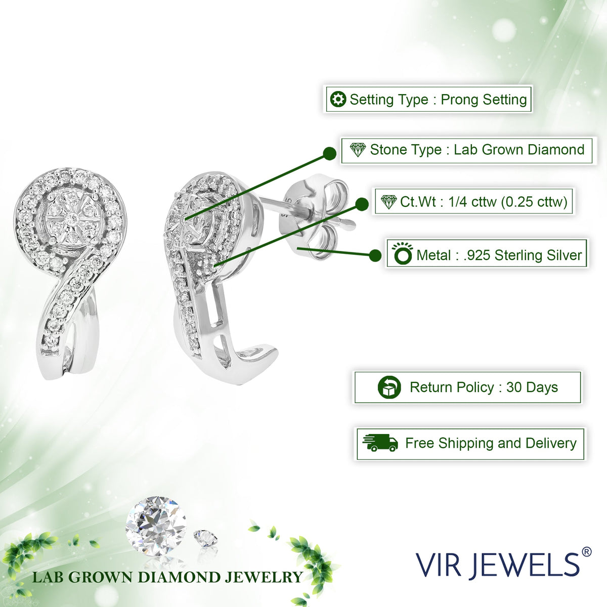 Crafted in .925 sterling silver with 60 round-cut lab-grown diamonds totaling 1/4 cttw. Prong-set for brilliance. Diamond color: H-I; clarity: SI1-SI2. Dangle earring width: 8mm (1/3 inch); height: 15mm (2/3 inch). April birthstone.