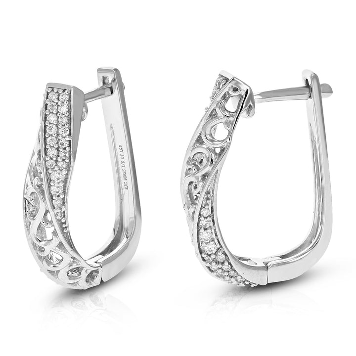Handcrafted in .925 sterling silver with 66 round lab-grown diamonds (1/5 cttw). Diamond clarity: SI1-SI2, color: H-I. Prong setting. Hoop width: 4 MM (1/6 Inch); Height: 16 MM (2/3 Inch).
