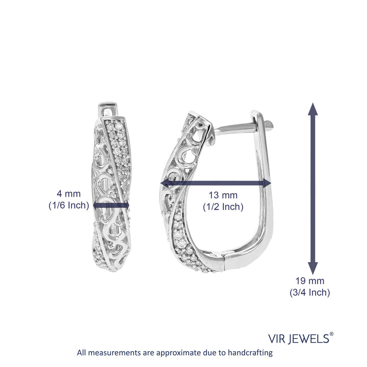 These 1/5 cttw Round Lab Grown Diamond Hoop Earrings by Vir Jewels are designed with 66 sparkling diamonds, all mounted in a prong setting to enhance their brilliance. The .925 sterling silver hoops offer long-lasting shine and durability, perfect for any occasion.