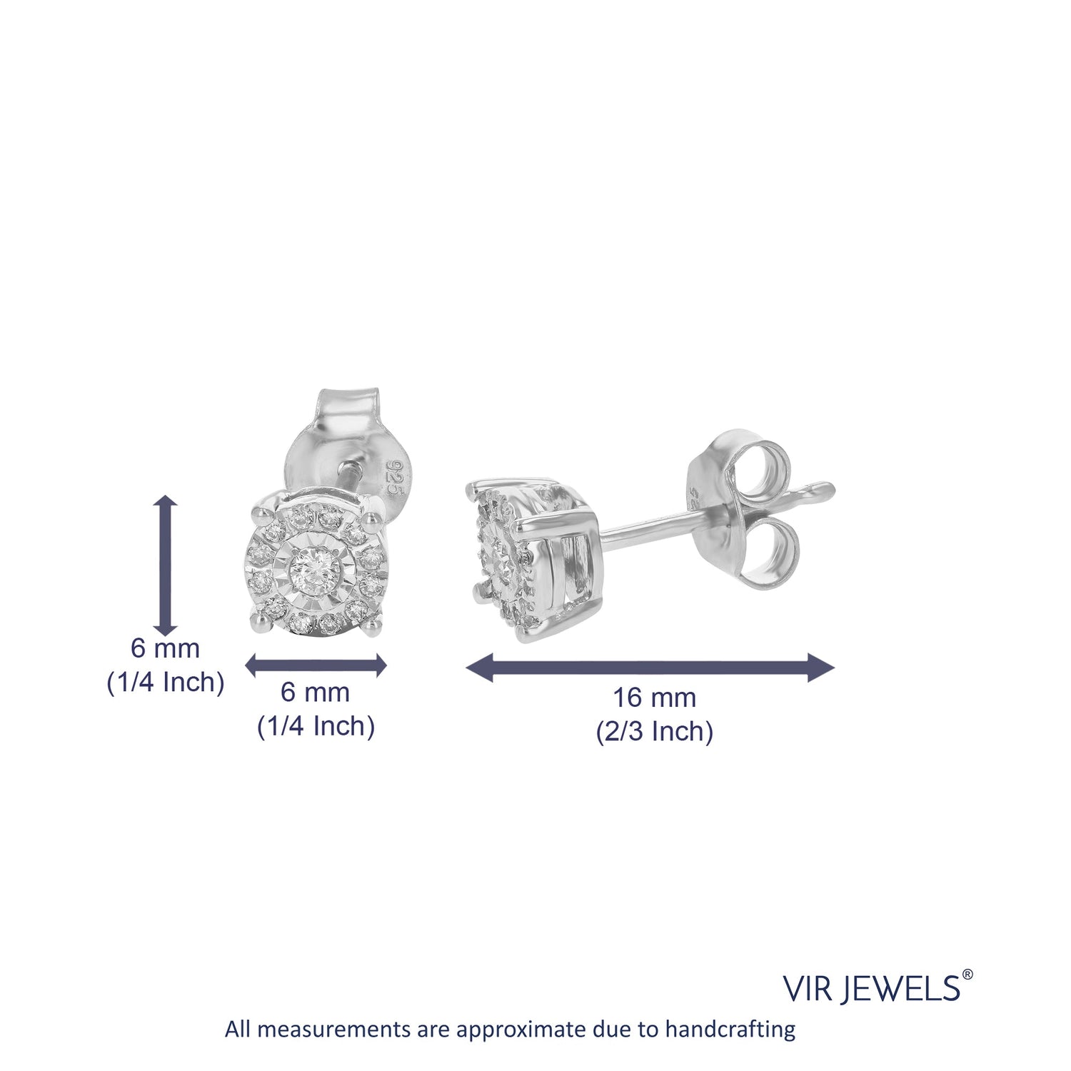 These 1/6 cttw Round Cut Lab Grown Diamond Stud Earrings by Vir Jewels radiate refined elegance. Featuring 26 dazzling diamonds in a secure prong setting, these studs offer an eye-catching sparkle while maintaining a timeless and sophisticated aesthetic. The sterling silver base enhances the brilliance of the diamonds, making them a versatile accessory perfect for daily wear or special occasions.