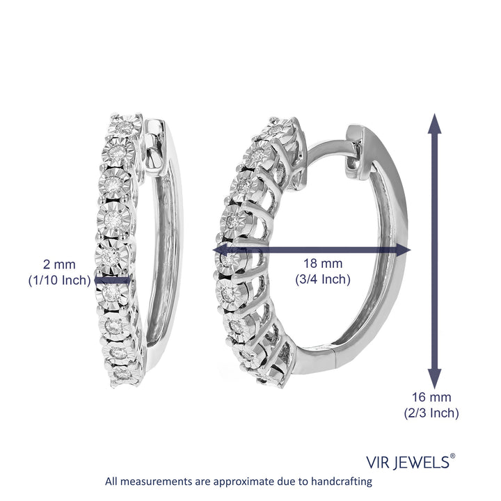 1/8 cttw 18 Stones Round Lab Grown Diamond Hoop Earrings .925 Sterling Silver Prong Set 3/4 Inch