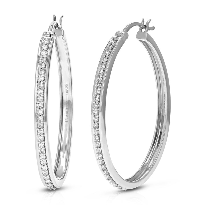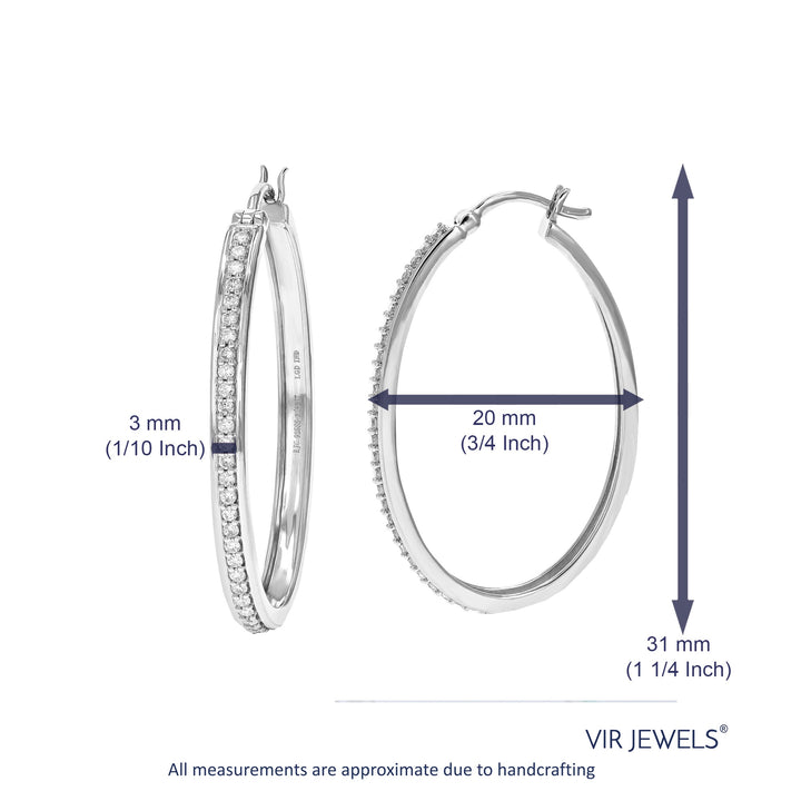 3/8 cttw 54 Stones Round Lab Grown Diamond Hoop Earrings .925 Sterling Silver Prong Set 3/4 Inch