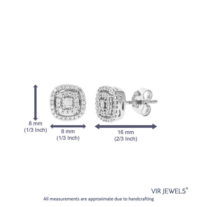 1/4 cttw 66 Stones Round Lab Grown Diamond Studs Earrings .925 Sterling Silver Prong Set Square Shape