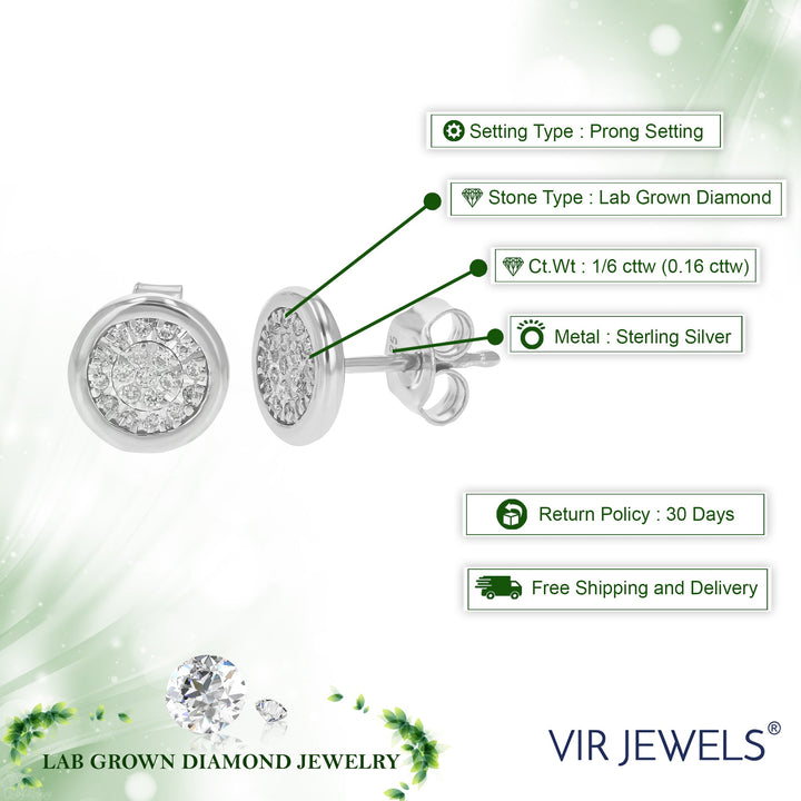 These 1/6 cttw Round Lab Grown Diamond Stud Earrings by Vir Jewels are a delicate and elegant addition to your jewelry collection. Set with 38 round lab-grown diamonds in a secure prong setting, these earrings highlight the brilliance of the stones. The .925 sterling silver setting ensures lasting shine, making these studs versatile and stylish for any occasion. Whether dressed up or down, these earrings offer a refined, polished touch to your ensemble.