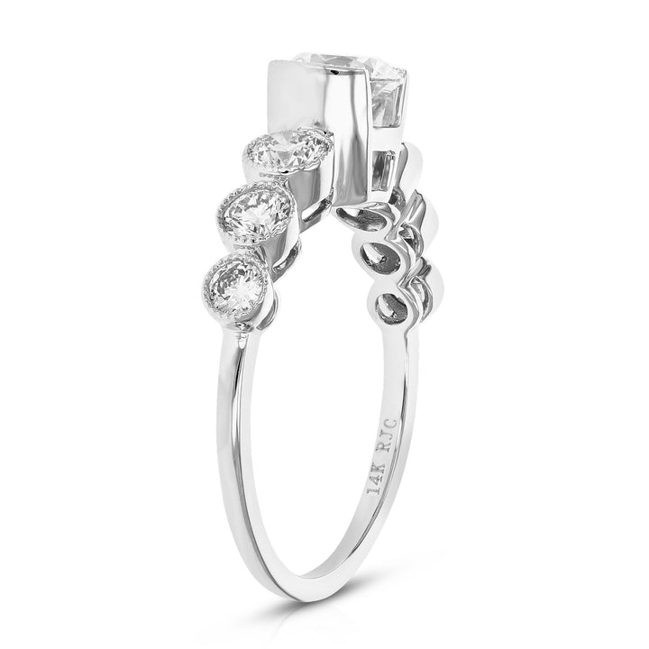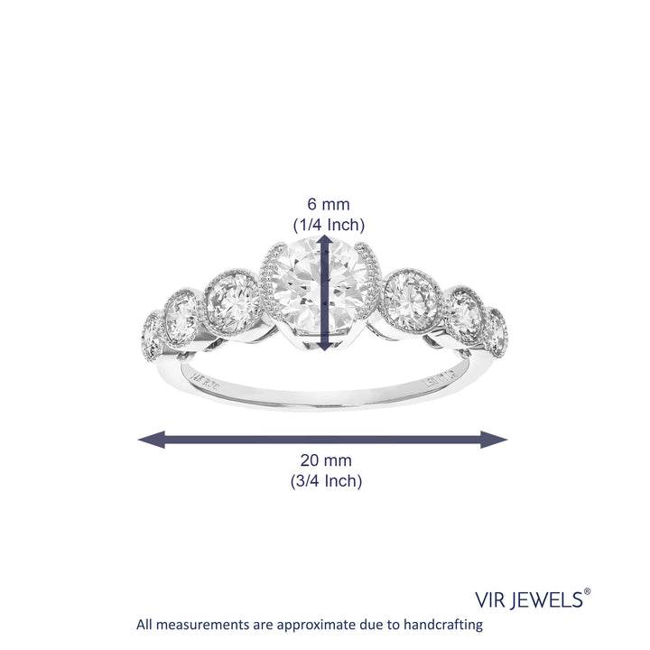 1.50 cttw Round Lab Grown Diamond Engagement Ring 7 Stones 14K White Gold Bazel Set 3/4 Inch