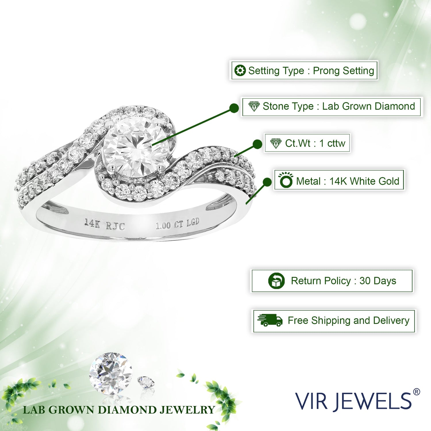 This 1 cttw Round Lab Grown Diamond Engagement Ring by Vir Jewels is a stunning symbol of everlasting love. Featuring a radiant center diamond surrounded by 38 prong-set side stones, this 14k white gold engagement ring exudes elegance and brilliance. The timeless design ensures a perfect balance between classic beauty and modern craftsmanship.