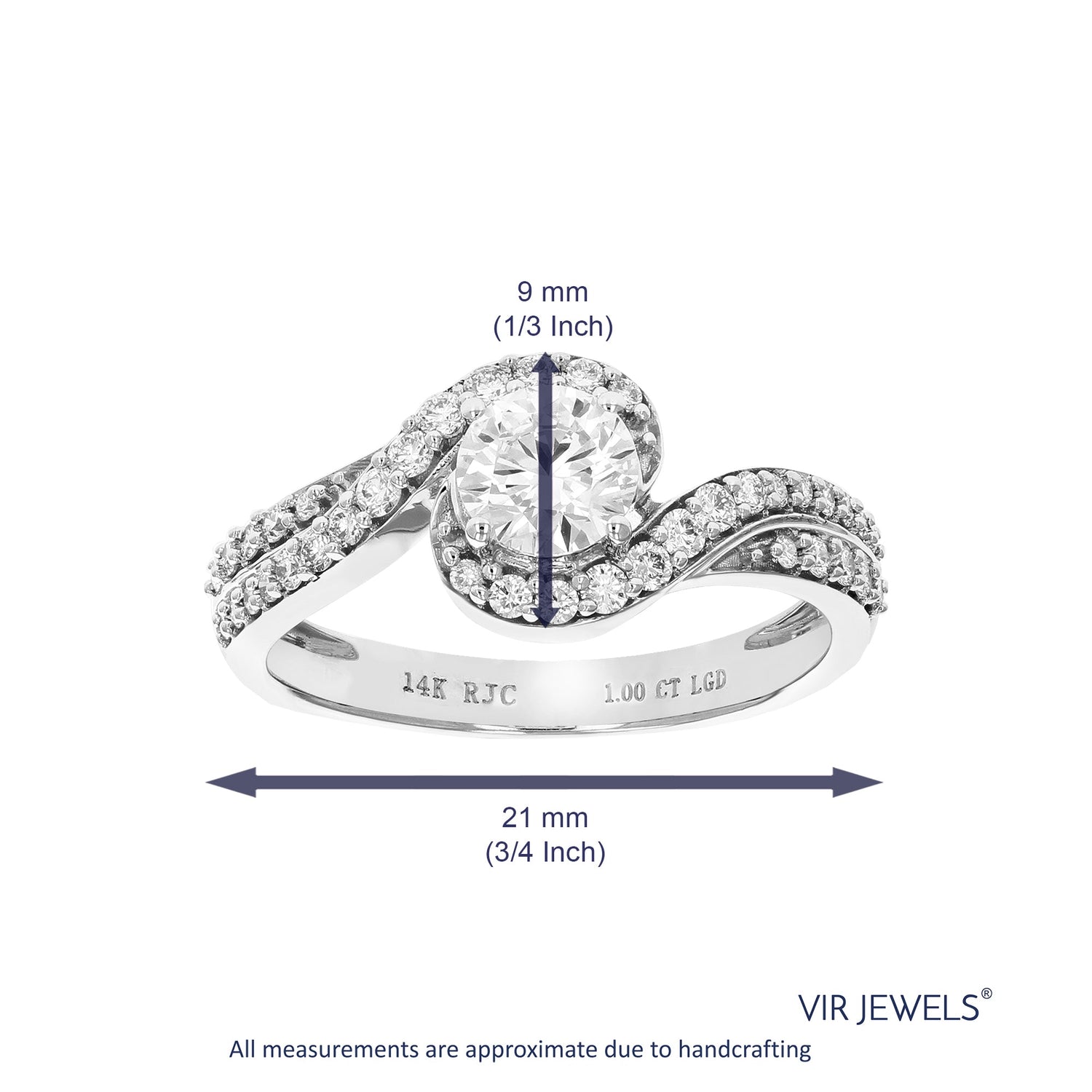 14k white gold. Lab-grown diamonds, 1 cttw. Diamond cut: Round. Diamond color: H-I. Diamond clarity: SI1-SI2. Setting: Prong. Number of diamonds: 39. Engagement ring width: 9mm (1/3 inch).