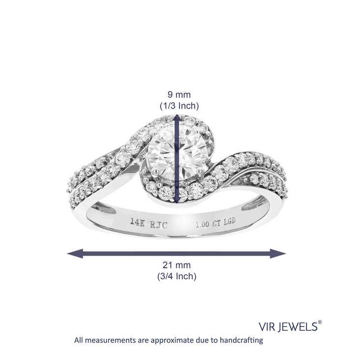 1 cttw Round Lab Grown Diamond Engagement Ring 39 Stones 14K White Gold Prong Set 3/4 Inch
