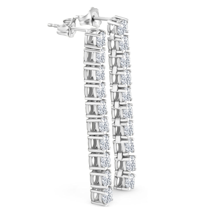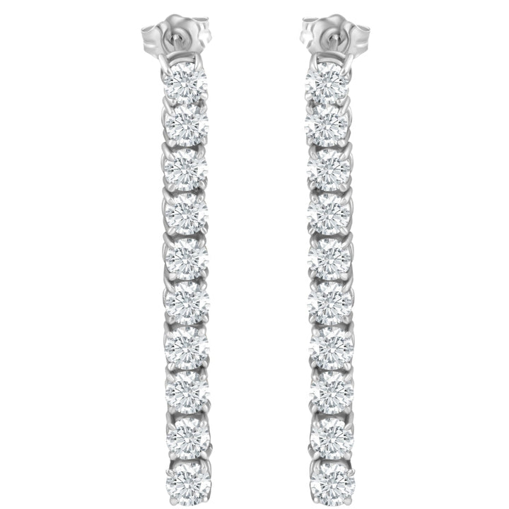 Features 4 ct total weight of round-cut natural diamonds, set in solid 14k white gold. Earrings measure approximately 1 1/2" tall.