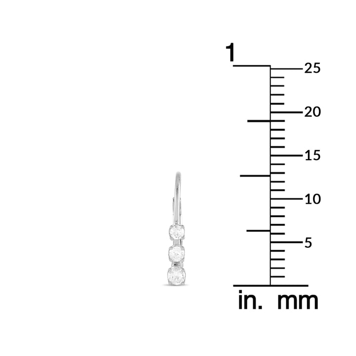 Crafted in 14K white gold with 0.25 carats of diamonds. Each earring measures 0.50 inches in length and 0.13 inches in width. Weight: 0.7 grams per earring.
