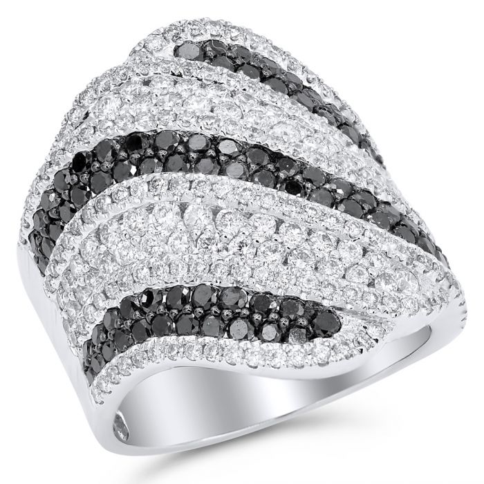 Crafted from 14K white gold with 1.73 carats of white diamonds and 1.35 carats of black diamonds.