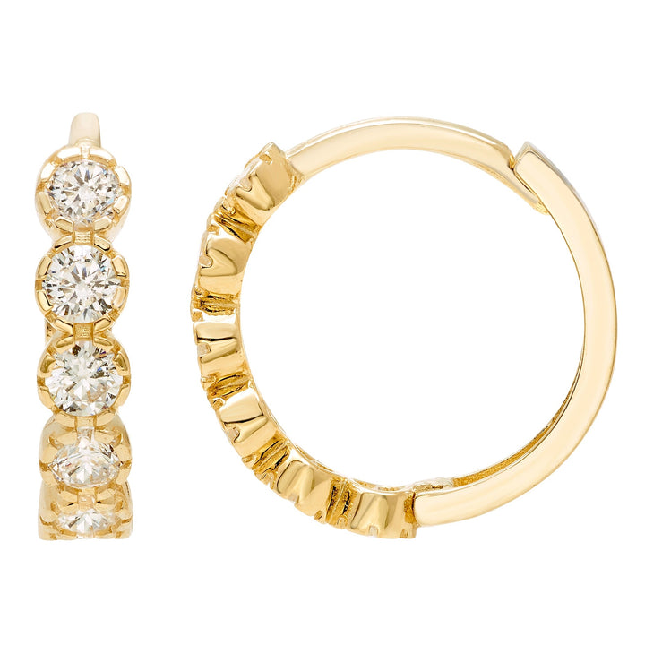 14k Yellow Gold Milgrain CZ Huggie Earrings, 4x14mm, with Endless Back, Women’s