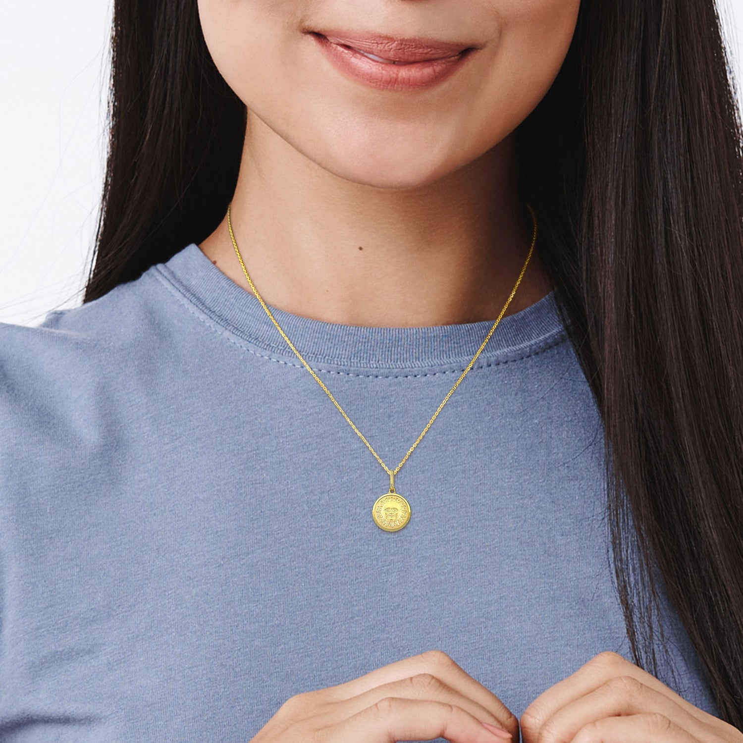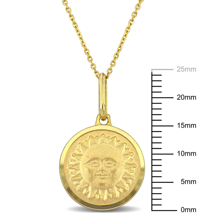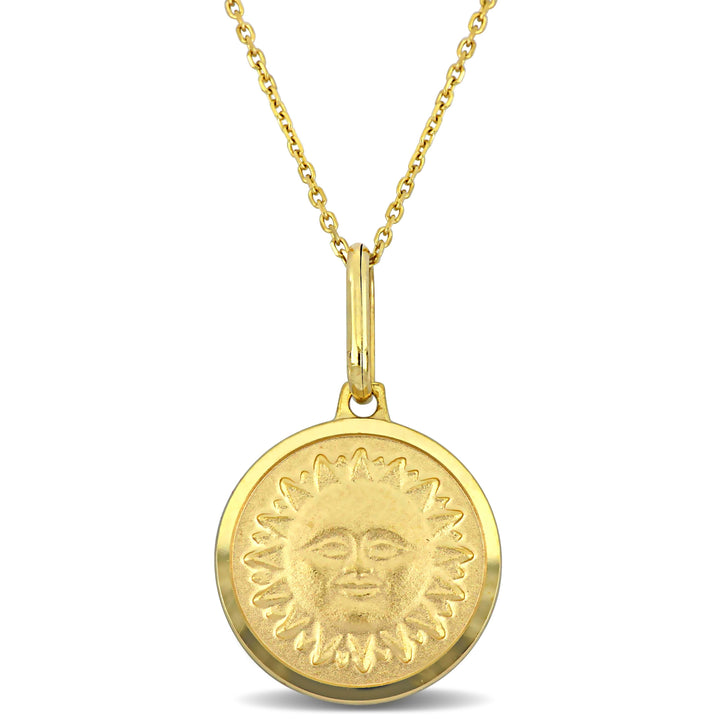 10k yellow gold. Sun emblem pendant. 16' diamond-cut chain with 2' extension, spring ring clasp.