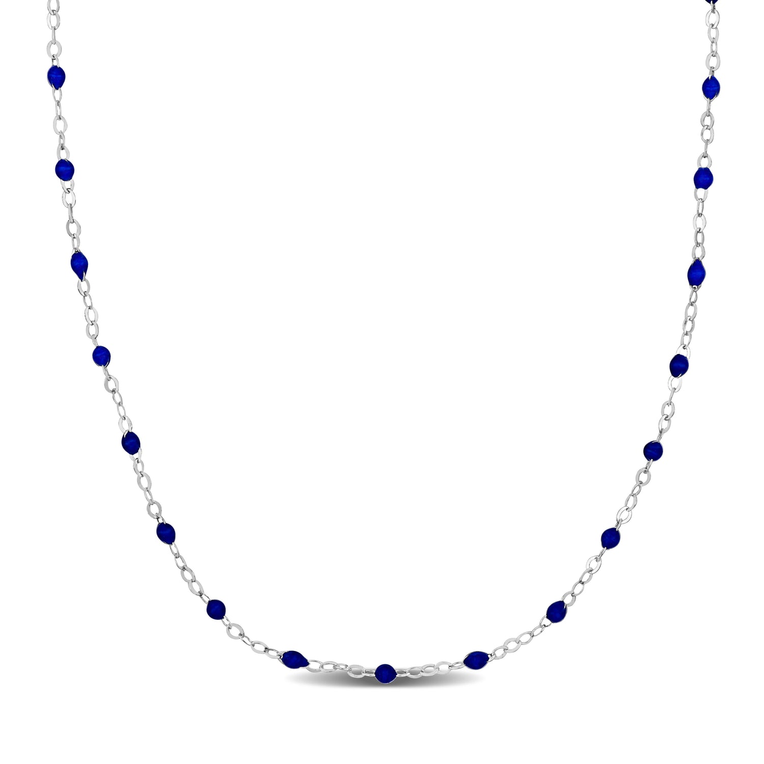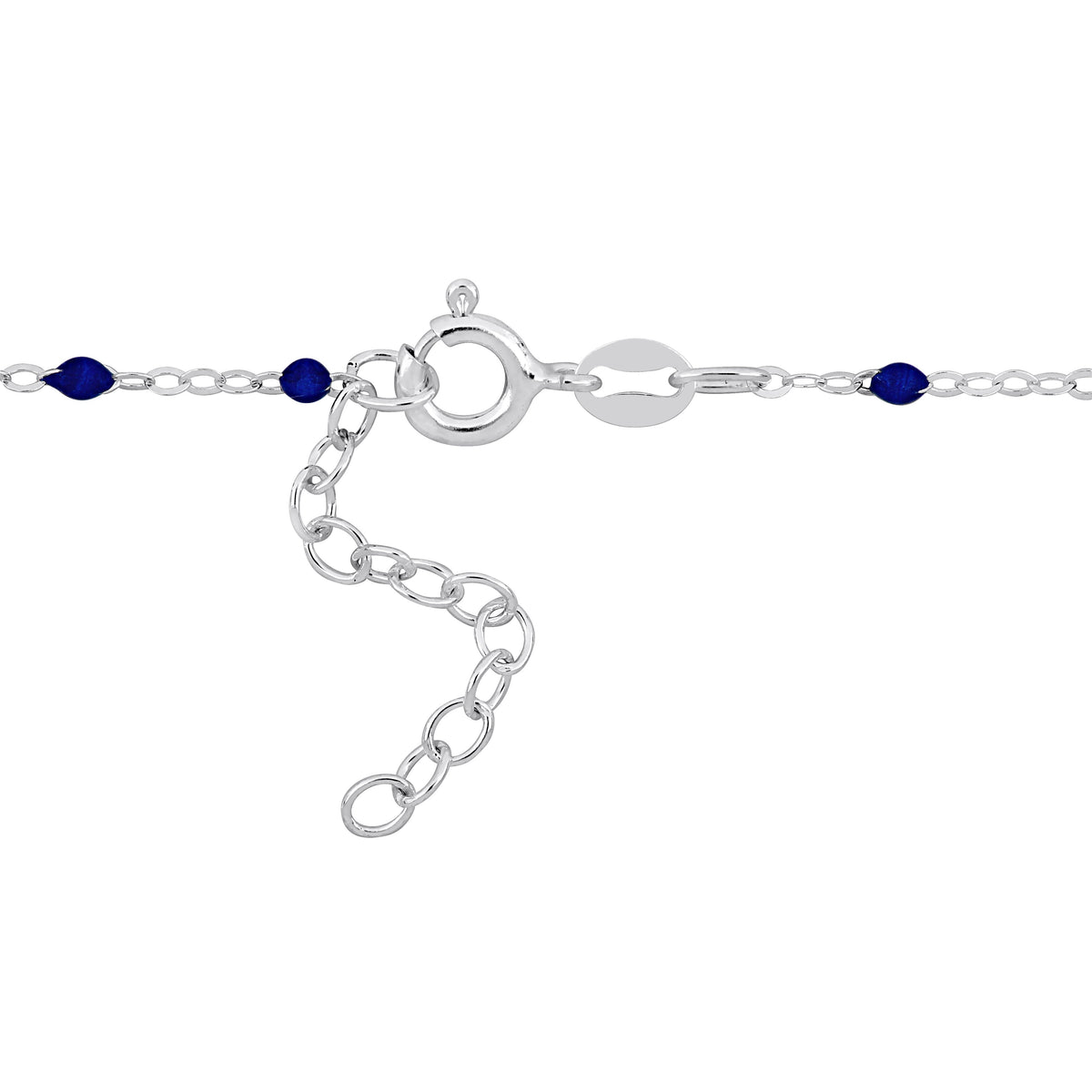Crafted in sterling silver with blue enamel beads. Measures 18 inches with a 1-inch extender (19-inch max length). Secured with a spring ring clasp. Made in Italy.