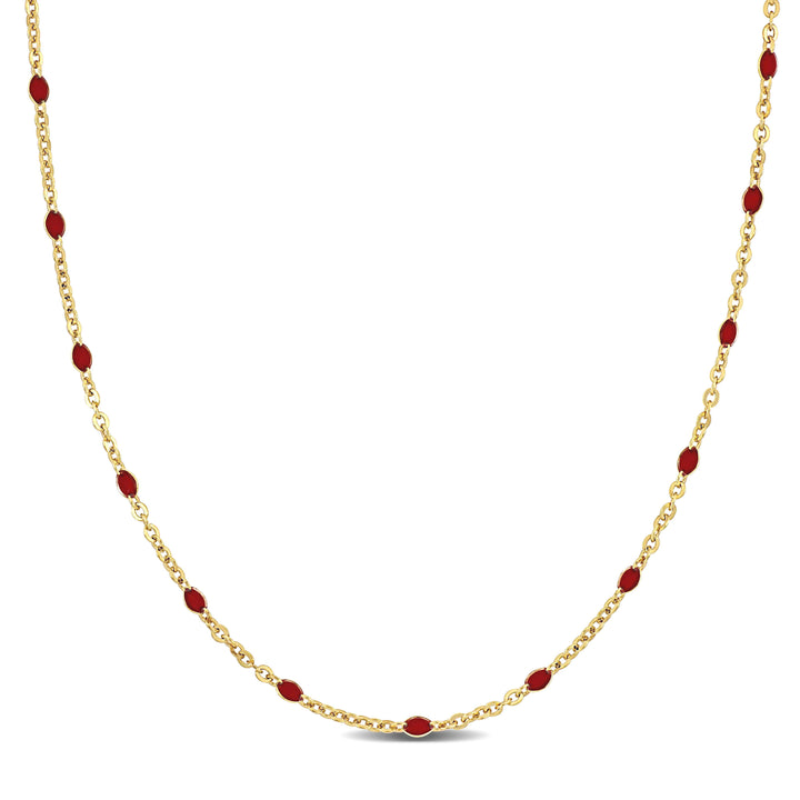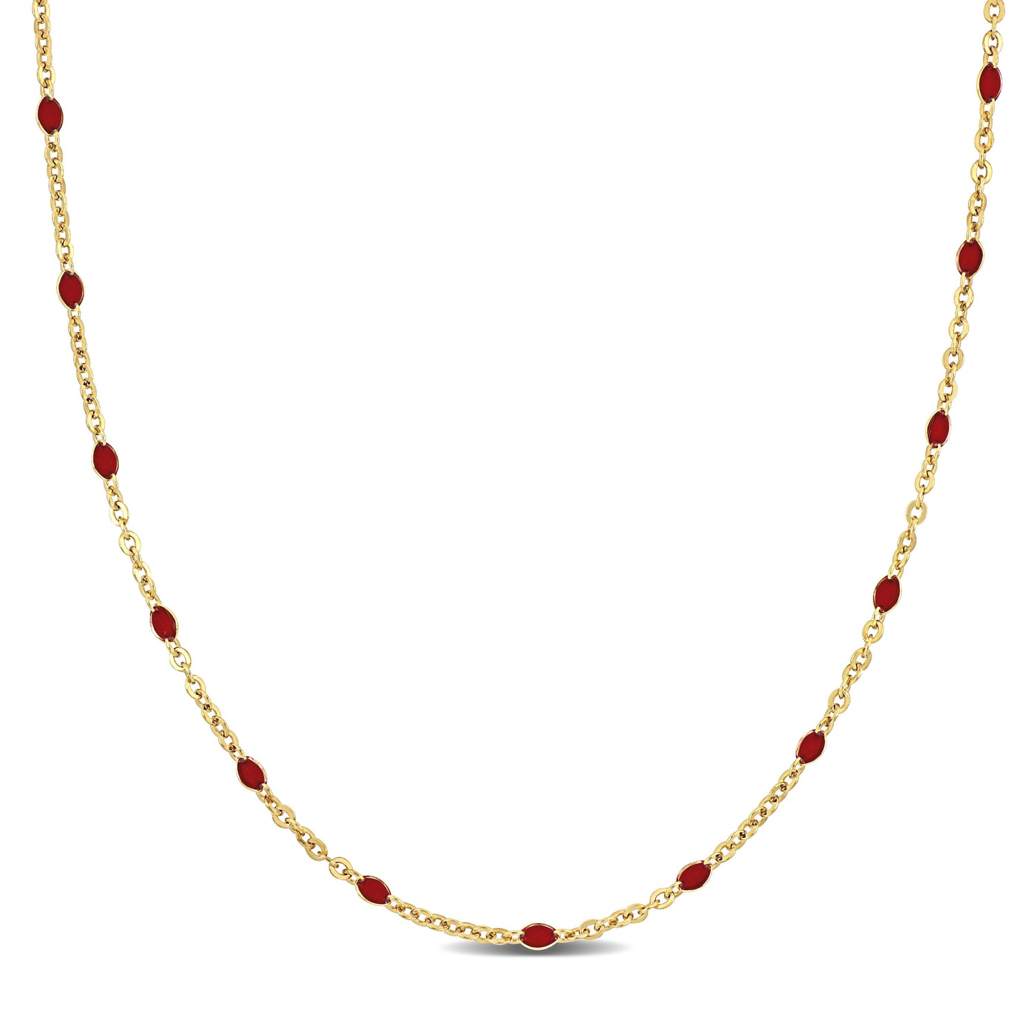 Mimi & Max Red Enamel Bead Station Necklace in Yellow Plated Sterling Silver - 18+1 in.