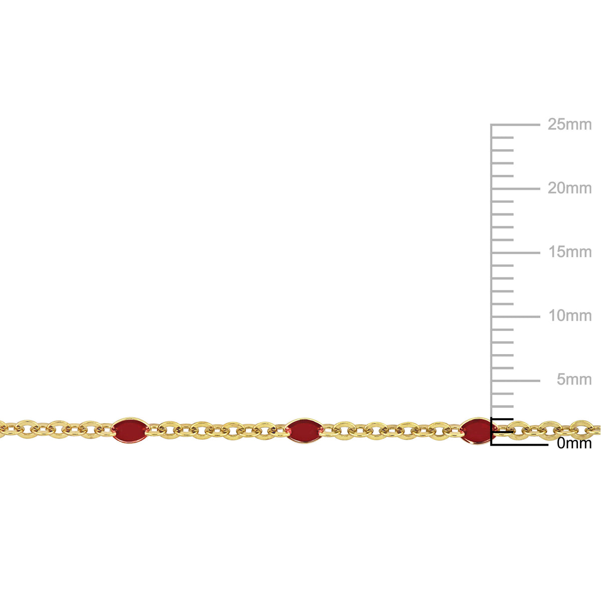 Crafted in yellow-plated sterling silver with red enamel beads. Necklace measures 18 inches with a 1-inch extender.