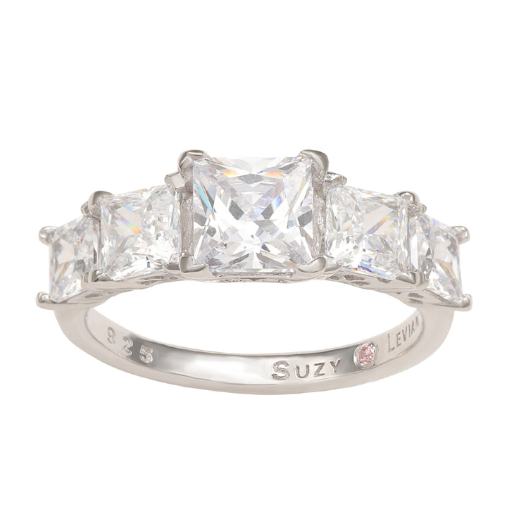 Suzy Levian Sterling Silver Graduating Asscher Cut White Cubic Zirconia Ring