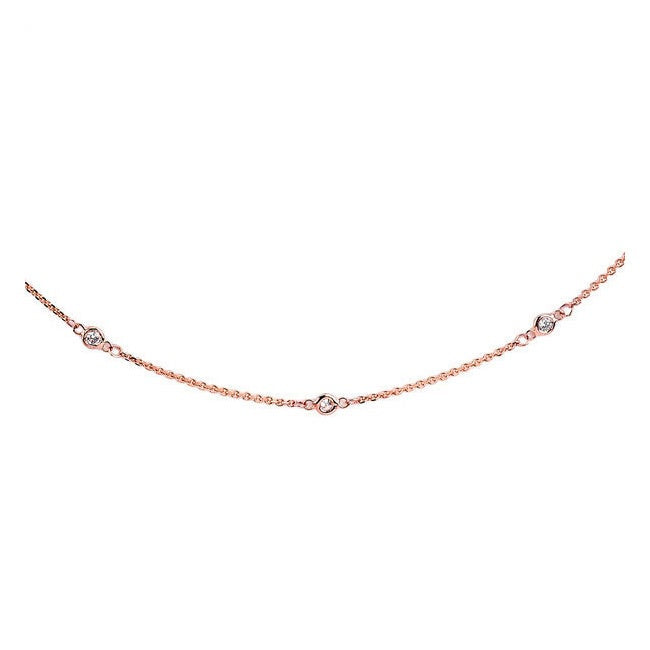 14K rose gold. 0.15 ct. t.w. natural round diamonds (G-H color, SI1-SI2 clarity). Cable chain with spring ring clasp. Adjustable length with three extension options (6.5', 7', 7.5').