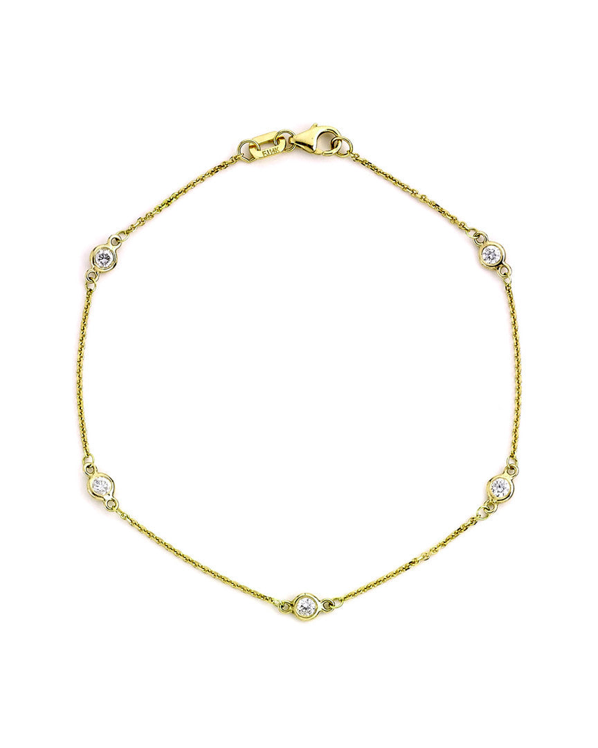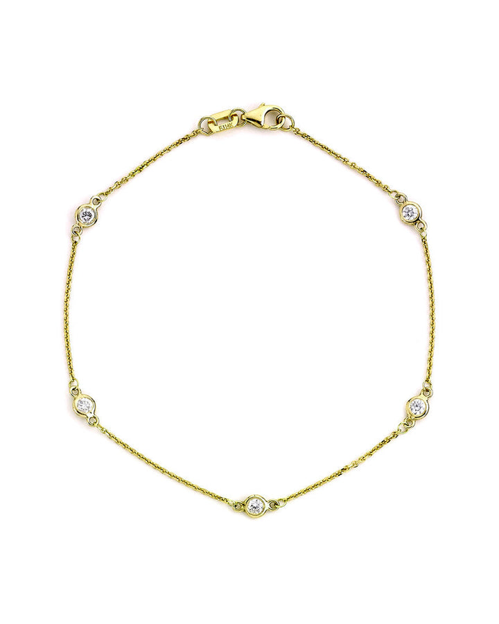 This Suzy Levian 14K Rose Gold Diamond Station Bracelet exudes understated luxury and femininity. Designed with five round brilliant-cut diamonds in bezel settings, this delicate and refined bracelet sparkles with timeless elegance. The high-polish 14K rose gold finish enhances the warmth and brilliance of each diamond, making it the perfect piece for stacking or wearing solo.