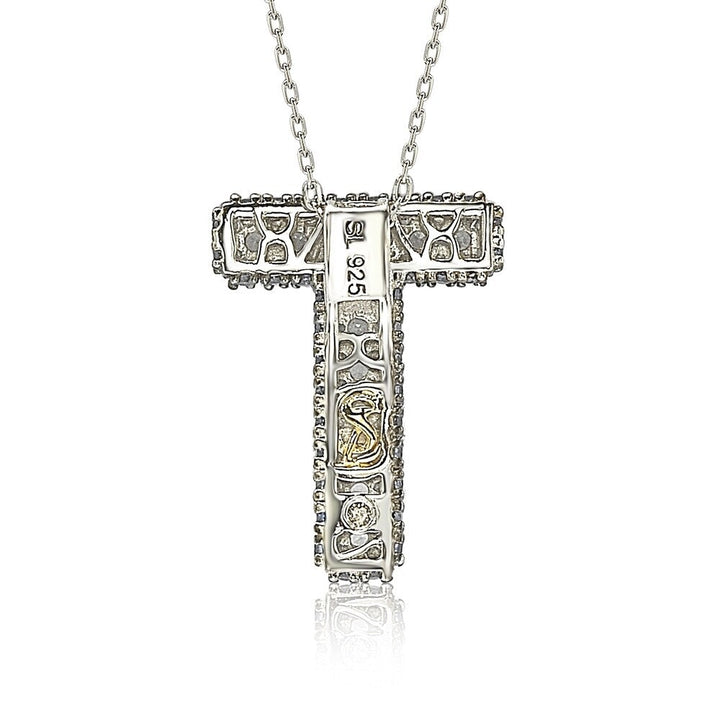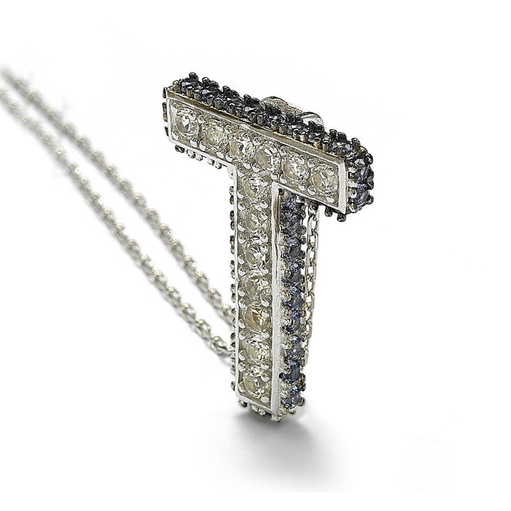 Suzy Levian Sterling Silver Sapphire & Diamond Accent Letter Pendant is a personalized piece designed with sophistication. Each pendant features natural blue sapphires and white created sapphires, hand-set in sterling silver to create a 3D effect. The pendant’s design includes a row of larger created sapphires, accented by smaller natural blue sapphires along the borders, creating an elegant and sparkling look. This pendant is a great gift for any occasion, offering a personalized touch with a hidden brown diamond and yellow plated SL logo on the back.
