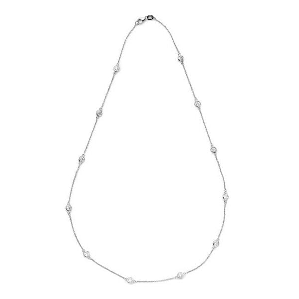Crafted in 14k rose gold with 12 round-cut white diamonds (1 4/5 ct. t.w.) in a bezel setting. 18-inch cable chain with lobster claw clasp. Necklace width: 5mm.
