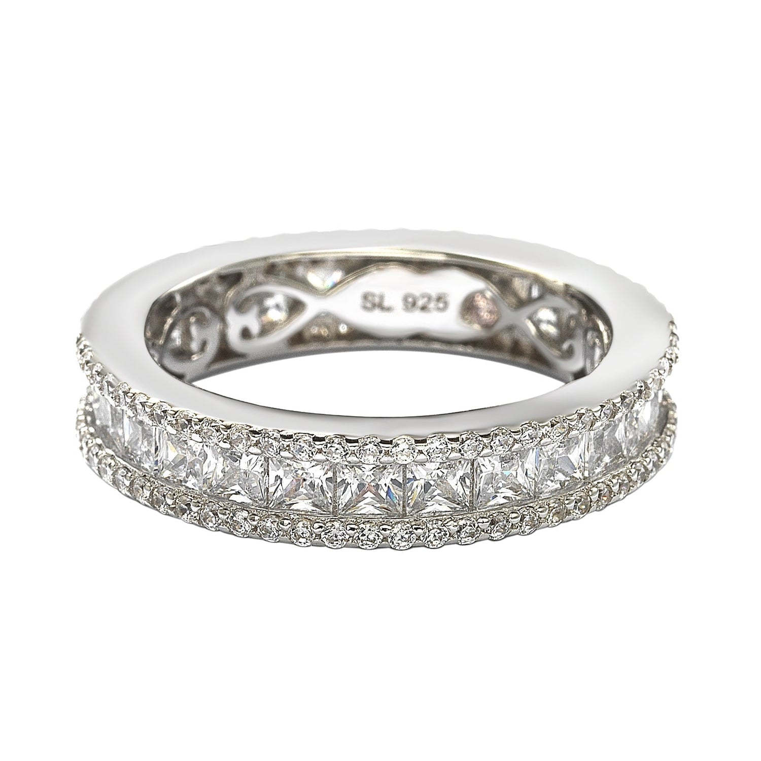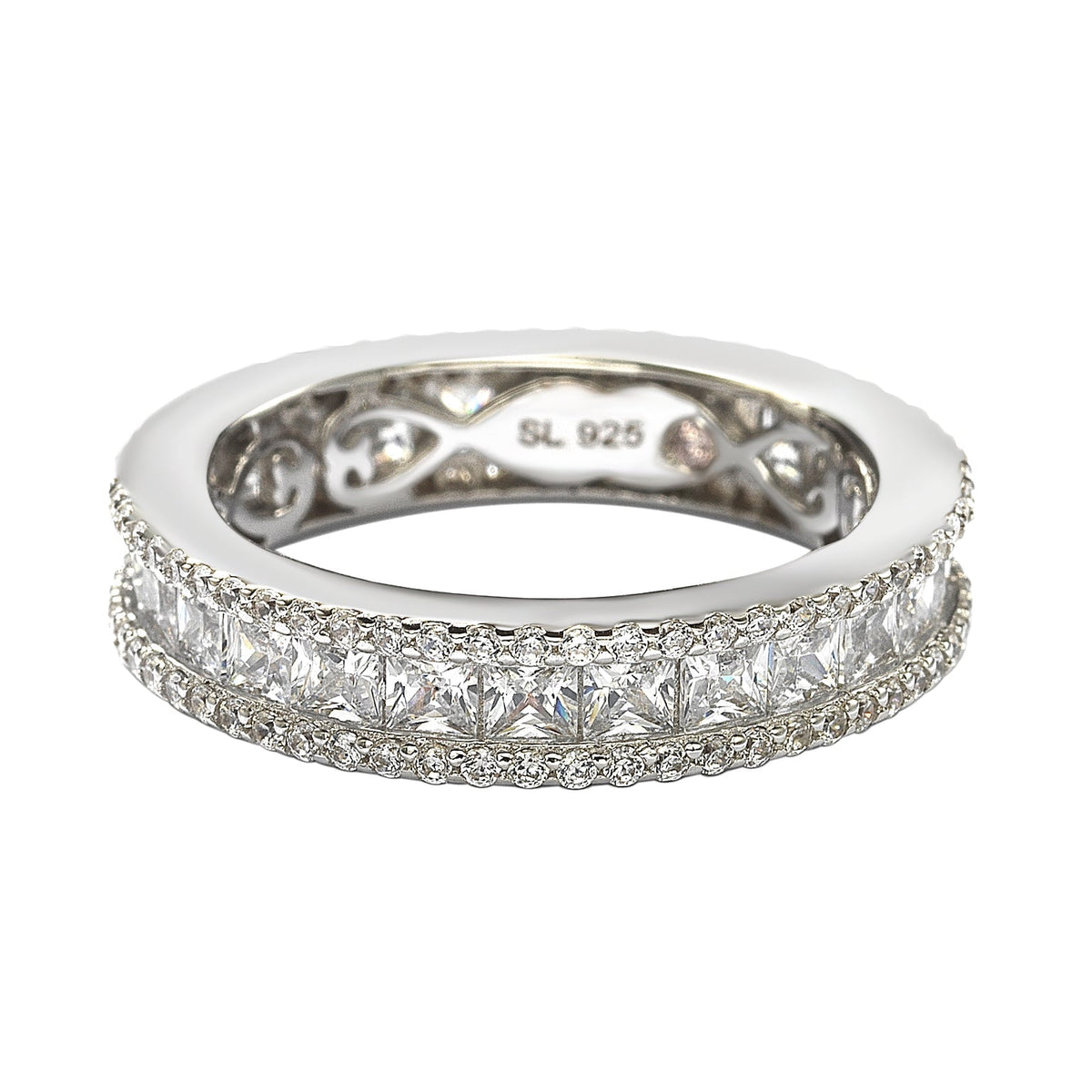 Suzy Levian Sterling Silver Princess Cut White Cubic Zirconia Eternity Band