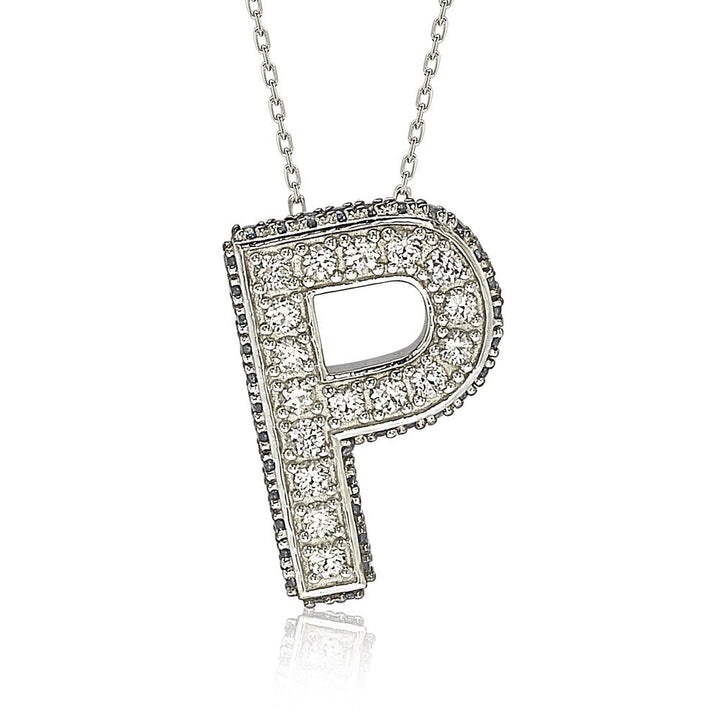 Suzy Levian Sterling Silver Sapphire & Diamond Accent Letter Pendant