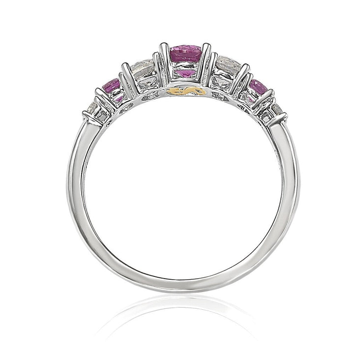 Crafted in 925 sterling silver with round-cut natural pink sapphires (0.78cttw) and created white sapphires (0.95cttw). Prong setting with a hidden brown diamond (0.02ct) in the shank. High-polish finish. Available in various sizes.