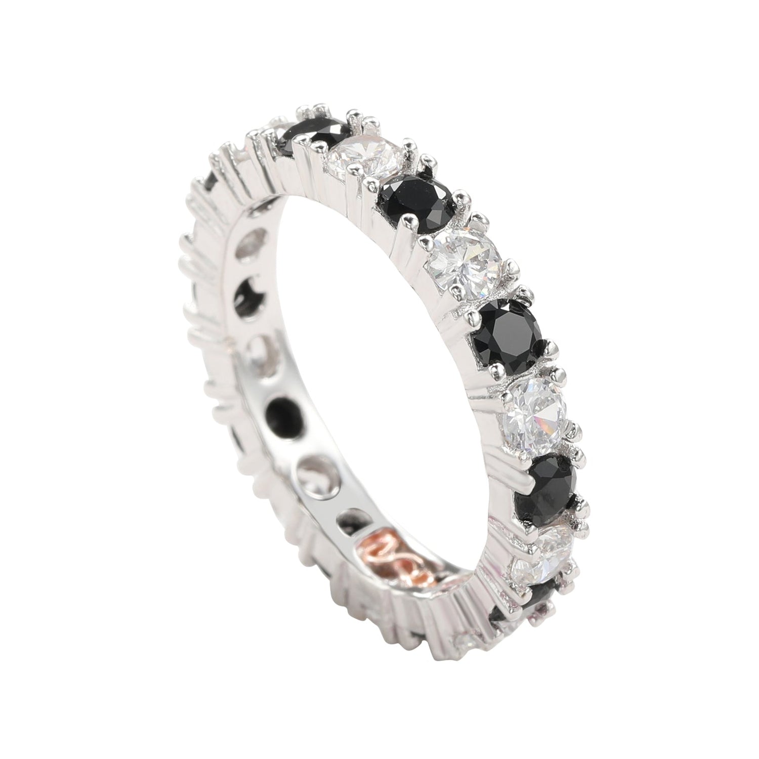 Suzy Levian Sterling Silver Cubic Zirconia Black Alternating Eternity Band