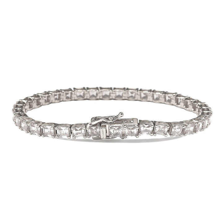 Crafted in 925 sterling silver with high-quality assher-cut white cubic zirconia stones. The bracelet features a closed under-gallery for a comfort fit. The bracelet is handmade, ensuring each piece is unique.