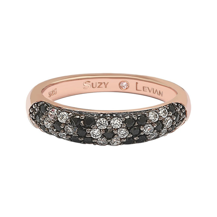 Suzy Levian Floral Black & White Cubic Zirconia in Rose Sterling Silver Half Band