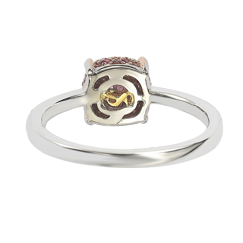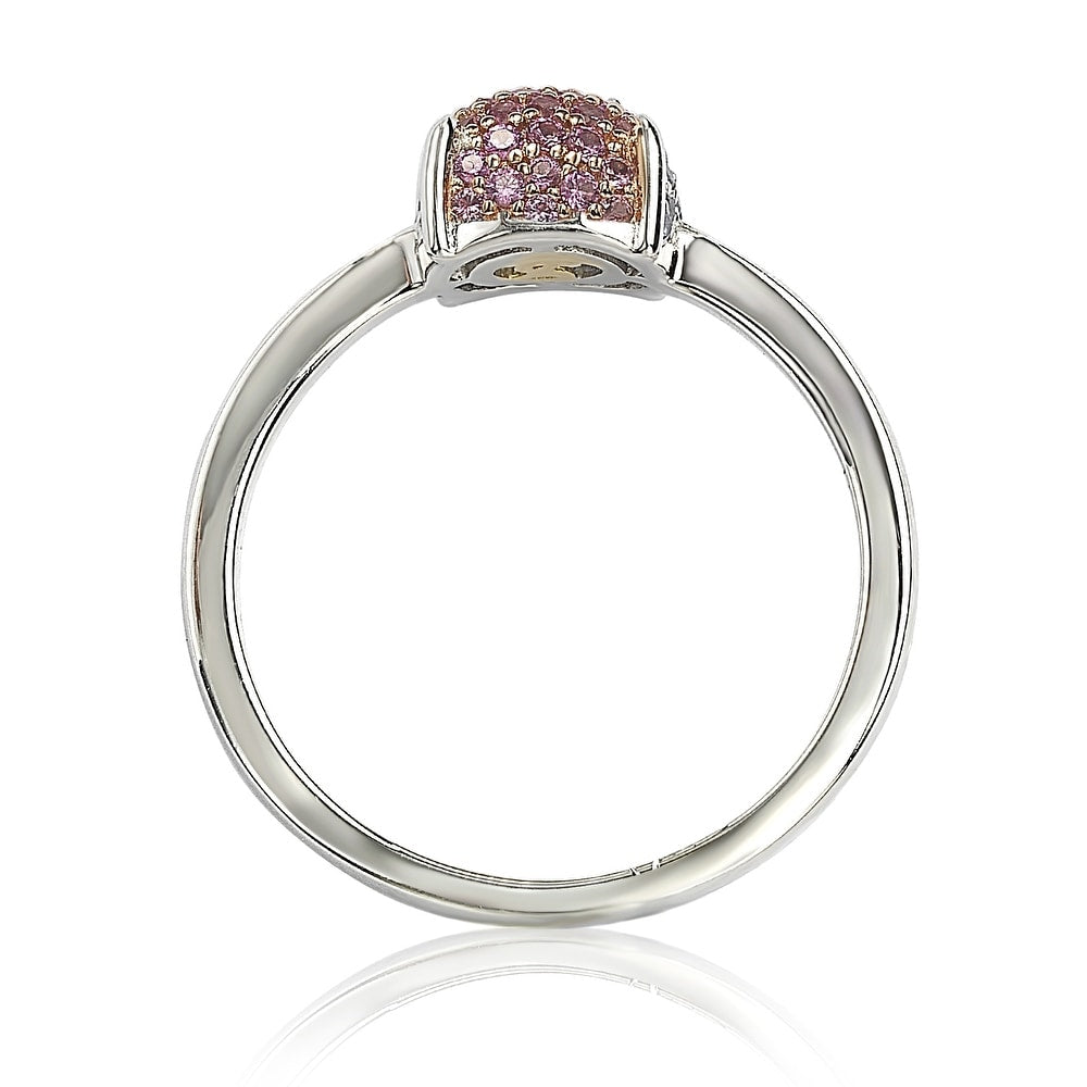 Sterling silver. Pave natural pink sapphires. Accent diamonds: 0.02ct hidden diamond. Closed undergallery with golden SL logo.