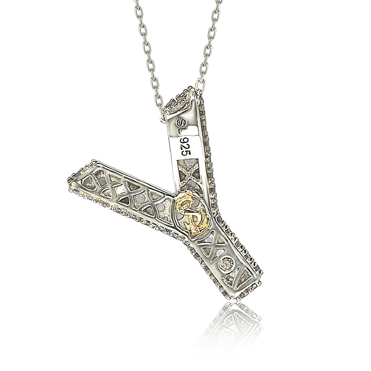 This breathtaking Suzy Levian Sterling Silver Sapphire & Diamond Accent Letter Pendant is a luxurious and meaningful piece of jewelry designed to capture individuality and strength. Perfect as a personalized gift, each letter pendant is intricately crafted in sterling silver and features a dazzling array of natural blue sapphires and created white sapphires. The design showcases a row of larger created white sapphires across the face of the pendant, while smaller natural blue sapphires are set along the side borders, creating a captivating 3D effect that ensures the pendant sparkles from every angle. Suzy Levian’s design is imbued with a powerful message of empowerment—each pendant reveals a hidden brown diamond on the back, along with a yellow-plated SL logo, symbolizing the inner strength, beauty, and power of women. This elegant design represents Suzy Levian's belief: 'Together we can inspire the world to appreciate the diamond in ourselves.' Whether for a graduation, birthday, holiday gift, bat-mitzvah, or anniversary, this pendant is an unforgettable and thoughtful way to show someone you care.