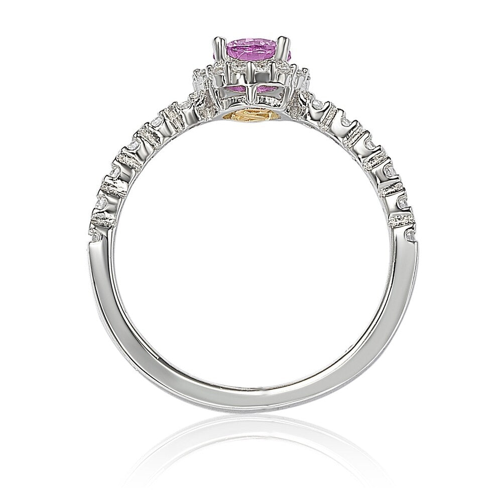Sterling silver with 0.40ct pink sapphire and created white sapphires. Diamond: 0.02ct. High polish finish.