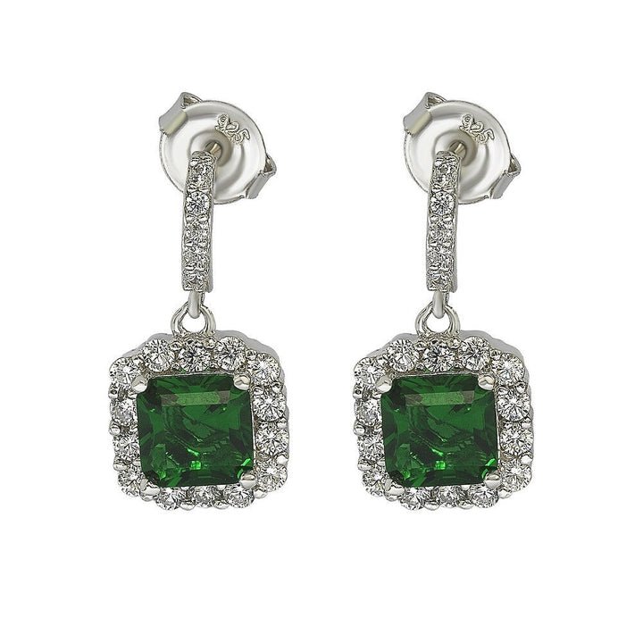 Suzy Levian Sterling Silver Green and White Cubic Zirconia Asscher Cut Drop Earrings