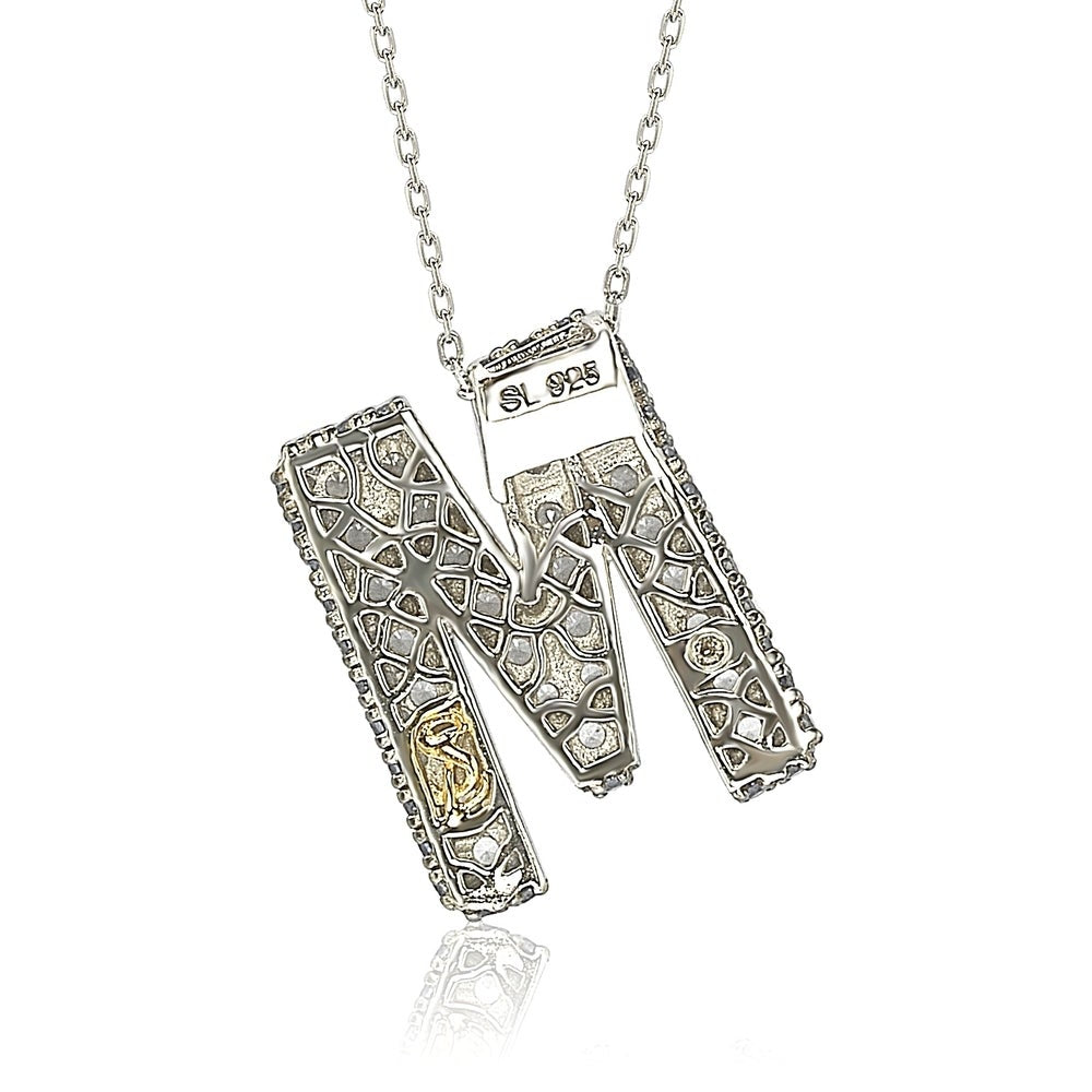 Suzy Levian Sterling Silver Sapphire & Diamond Accent Letter Pendant