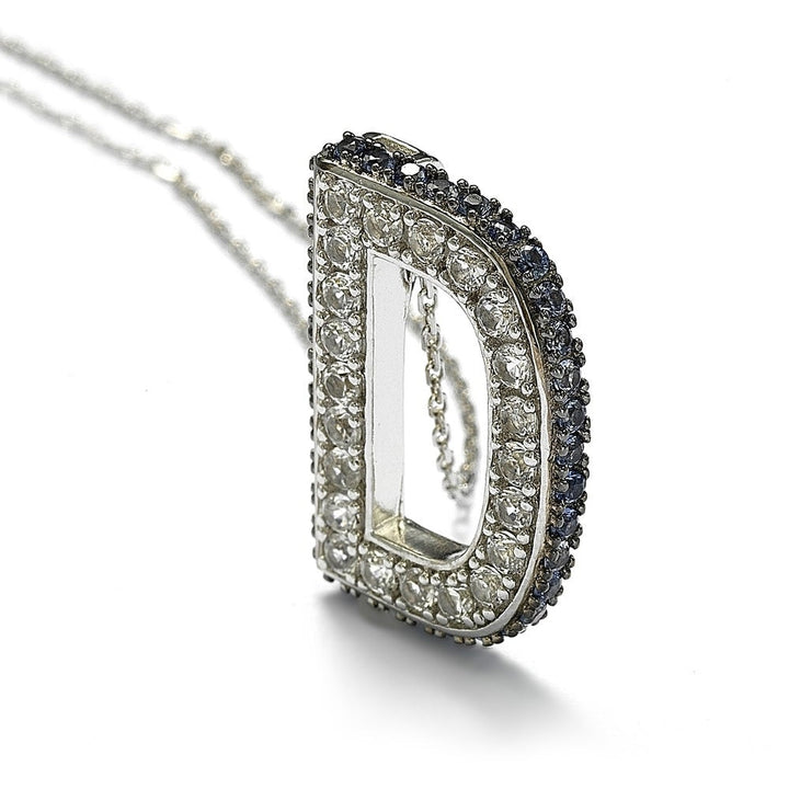This breathtaking Suzy Levian Sterling Silver Sapphire & Diamond Accent Letter Pendant is the perfect personalized piece to show someone special just how much they mean to you. Featuring a stunning combination of natural blue sapphires and white created sapphires, hand-set in sterling silver, this pendant radiates with beauty and meaning. The design features a row of larger white sapphires across the face of the pendant, complemented by smaller natural blue sapphires lining the side borders, creating a mesmerizing 3D effect that ensures the pendant sparkles from every angle. Each pendant is carefully crafted with Suzy Levian’s empowering message embedded within. A hidden brown diamond is set in the back of the pendant, paired with a yellow-plated SL logo, symbolizing strength, beauty, and inner power. Suzy Levian’s belief, 'Together we can inspire the world to appreciate the diamond in ourselves,' is beautifully reflected in every detail. This pendant is the perfect personalized gift for any occasion—be it a graduation, birthday, holiday, Bat Mitzvah, or anniversary—making it an unforgettable and meaningful gesture for a loved one.