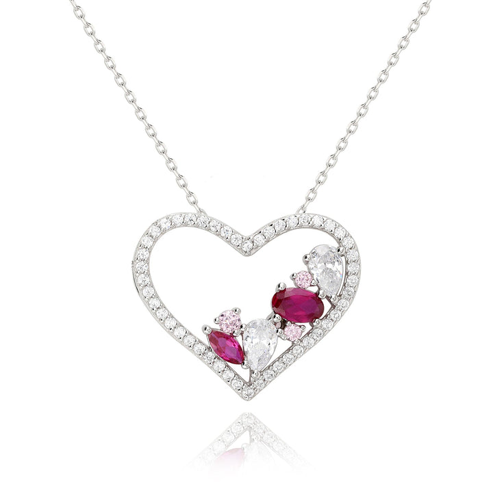 Suzy Levian Sterling Silver Ruby & White Cubic Zirconia Heart Pendant Necklace