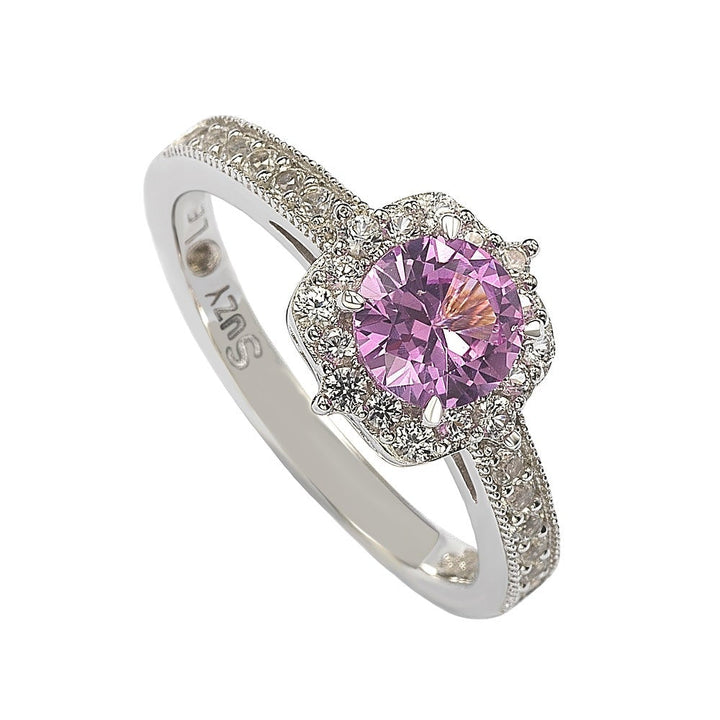 Suzy Levian Sterling Silver Pink Sapphire & Diamond Accent Center Stone Ring